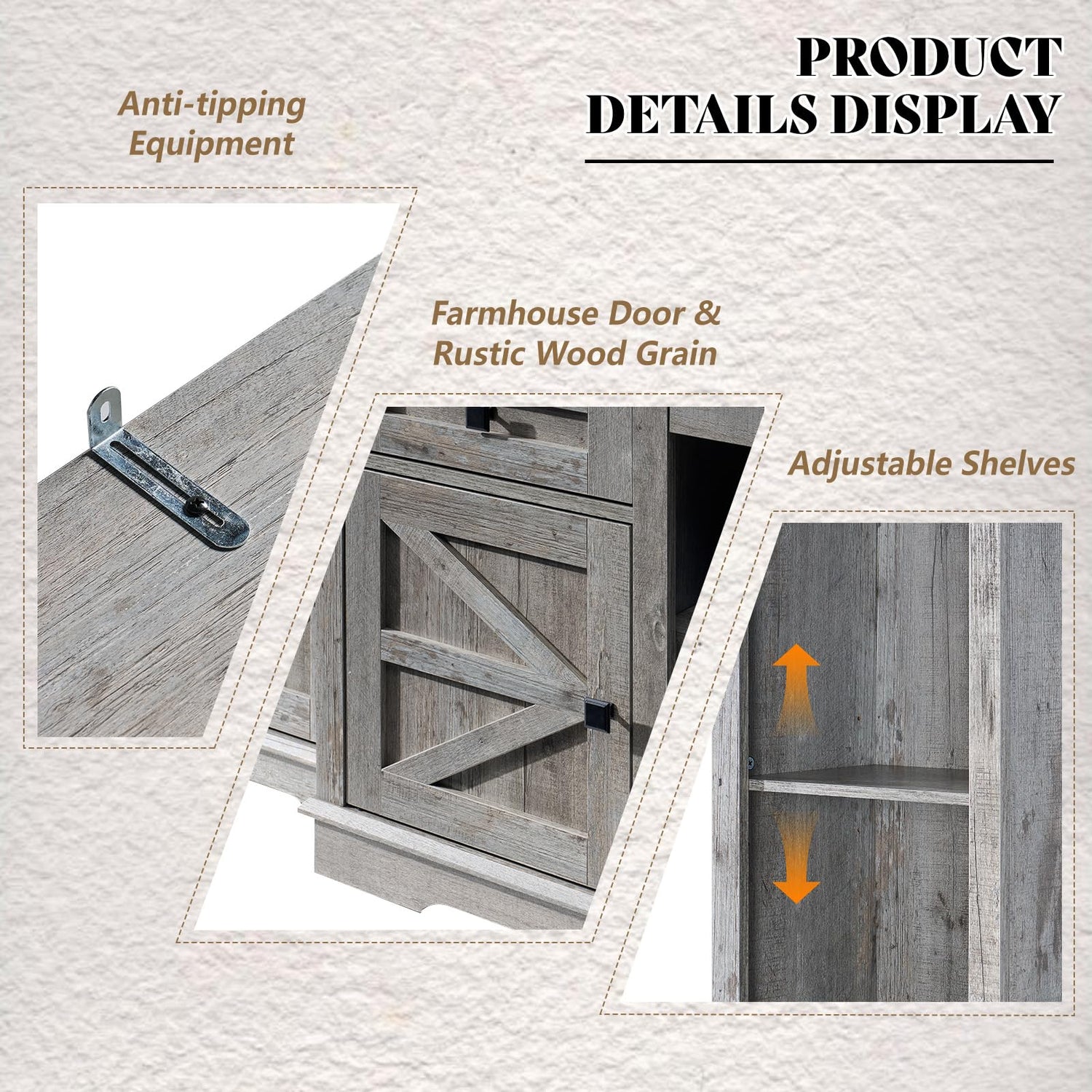- [Rustic Farmhouse Style] Featuring the timeless farmhouse aesthetic, natural distressed finish paired with barn doors gives your space a rustic feel and fits seamlessly with a variety of home decor styles.