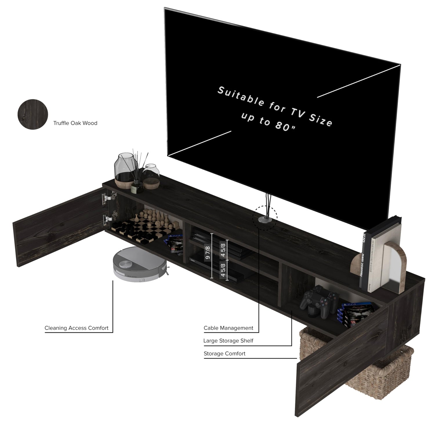 Atelier Mobili Floating TV Stand, 70 inch TV Stand for 75 inch TV, Floating TV Stand Wall Mounted, Floating Entertainment Center, TV Stands for Living Room, Black TV Stand (Black Oak)