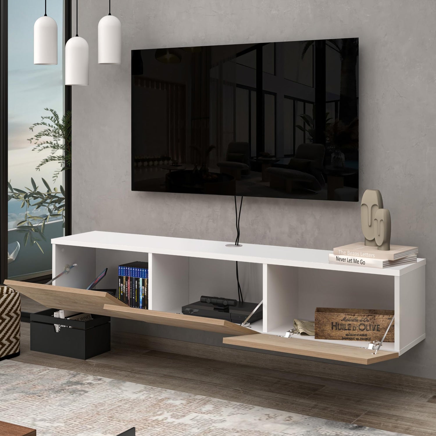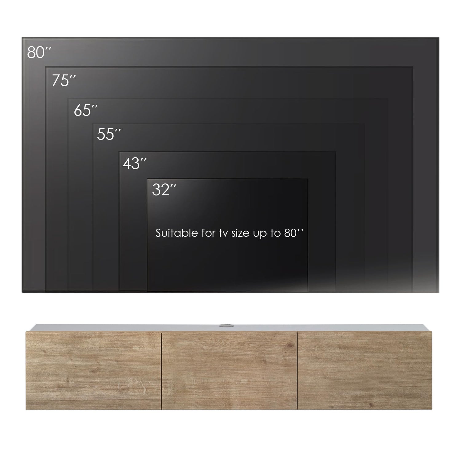 • Floating TV Stand : The floating tv stand wall mounted is a stylish alternative to traditional TV stands. It easily accommodates a 75 inch TV and 80 inch TV , making it a perfect for bedroom and living room area
