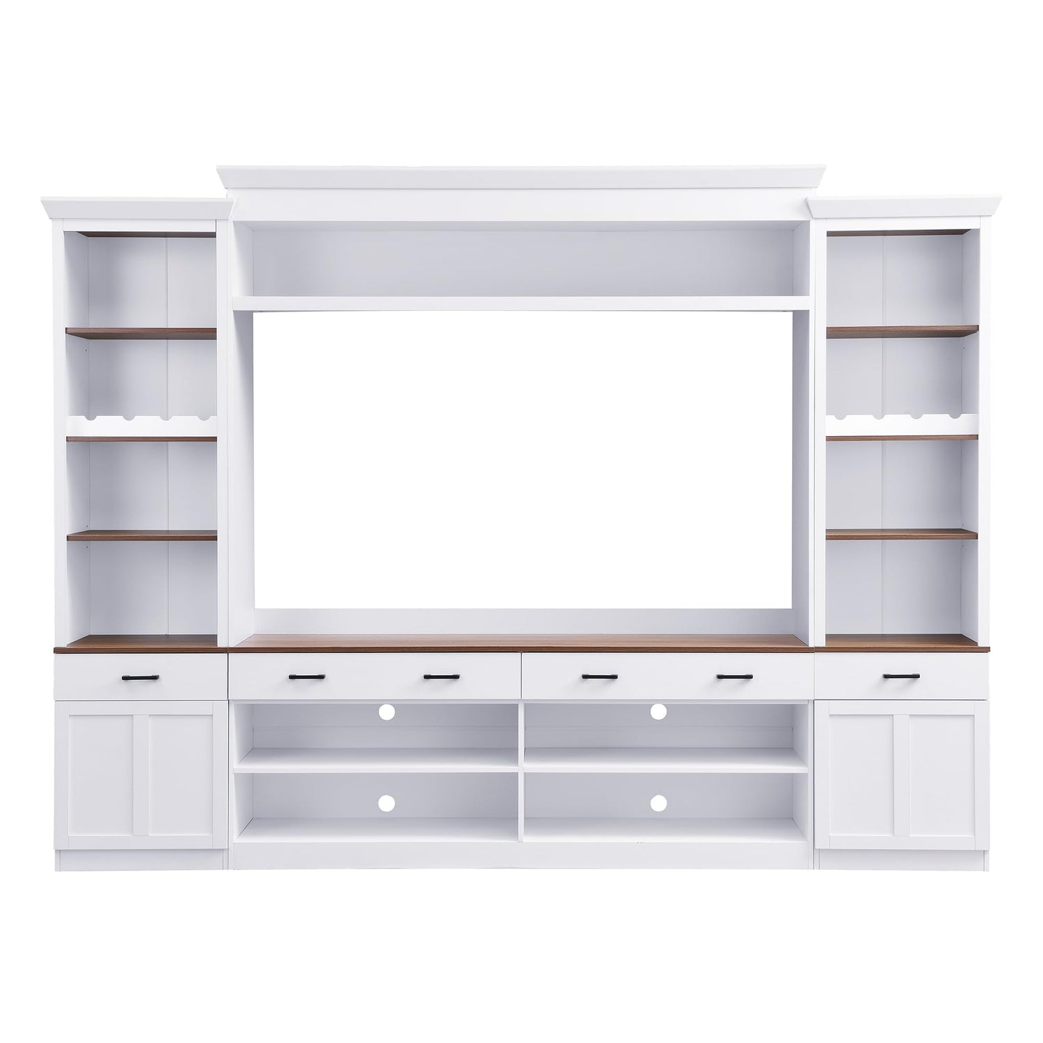 Ball & Cast Farmhouse 4-Piece Wall Unit Entertainment Media Center Set with Bookshelf for TVs Up to 70",Large Entertainment Wall Unit TV Stand W/Adjustable Shelves and Wine Rack,for Living Room,White