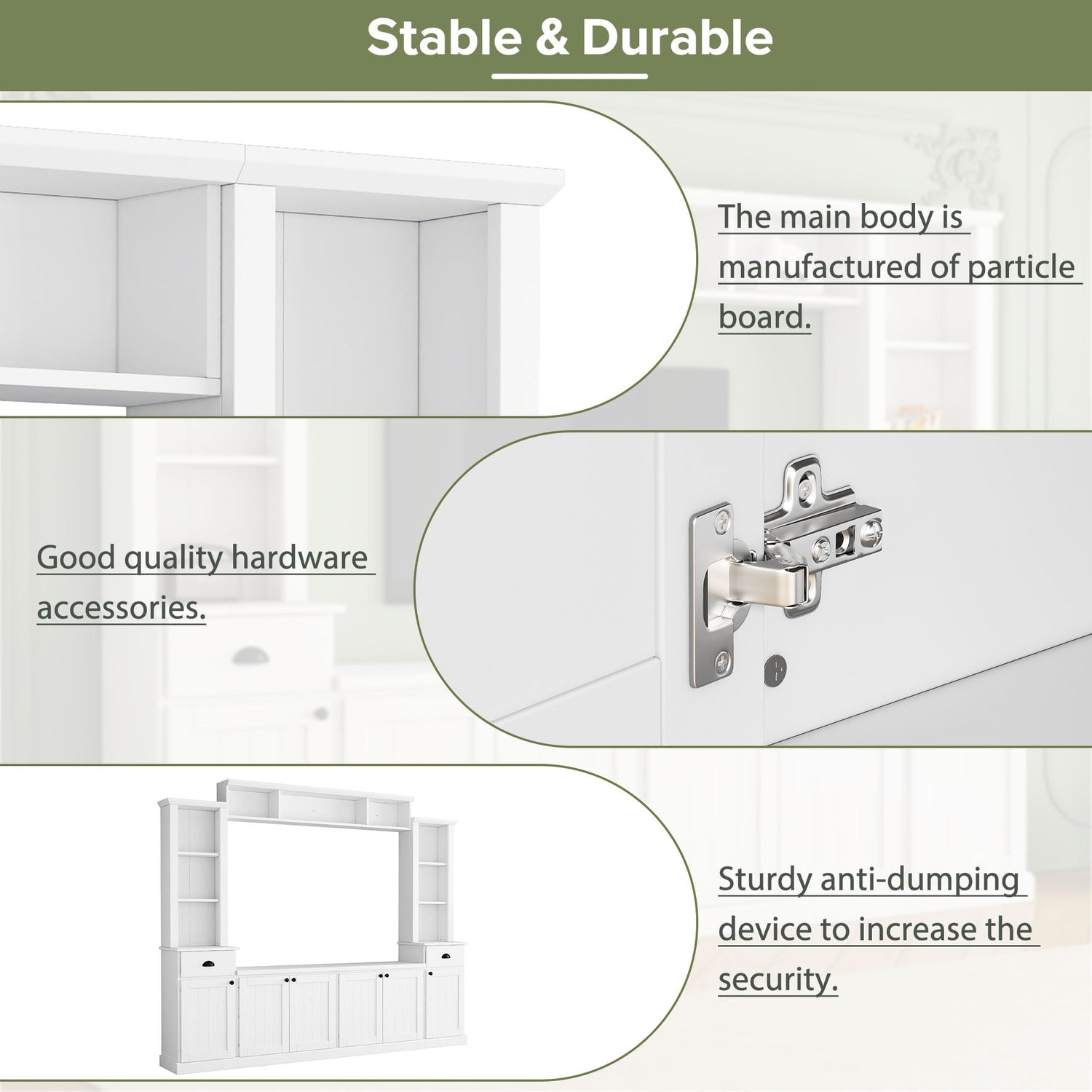 - 【Multi-Functional Entertainment Unit】This versatile wall unit combines a right pier, left pier, overhead bridge, and TV console, serving as a TV stand, bookcase, wine rack, and display case all in one.