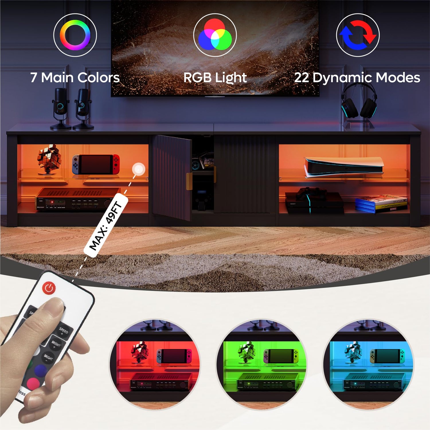 - 【Vibrant LED Gaming TV Stand】Bestier tv stand for living room features remote control 7-color LED lights and 22 dynamic modes to easily customize your favorite lighting mood and immerse you in an immersive movie watching or gaming experience