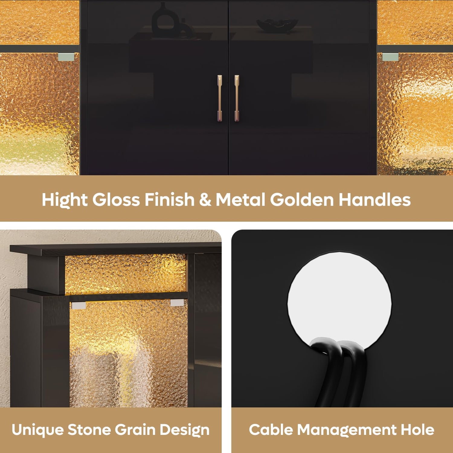 - Modern TV Stand: Combining a high-gloss finish and acrylic stone grain doors, this tv stand not only looks elegant, but the translucent stone grain doors also let in colorful LED lighting, adding modern sophistication to any living space. Suitable for TVs up to 70", this entertainment center is the perfect combination of style and practicality.