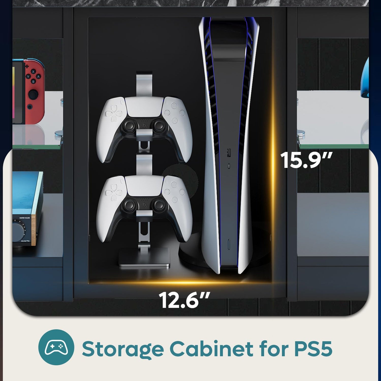 - 【Spacious Open Storage】This gaming entertainment center has 5 open compartments to store your PS5, DVD, router, gaming devices, Xbox, electronics, books, magazines, etc