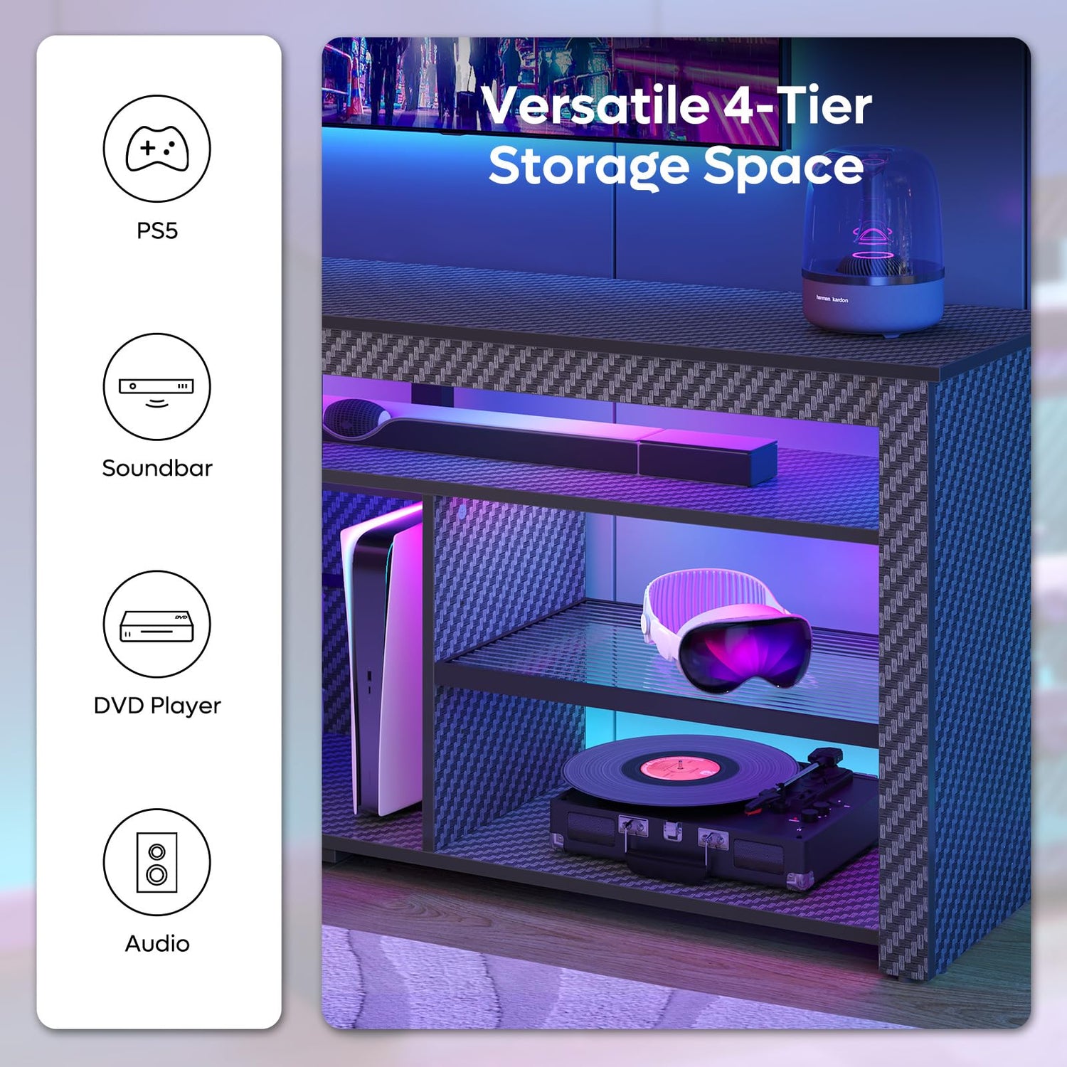 Bestier TV Stand for 70 inch TV, Tall Entertainment Center with 2 Led Lights, Gaming TV Console with Storage for PS5, Modern TV Cabinet for Bedroom, Living Room, Black Carbon Fiber