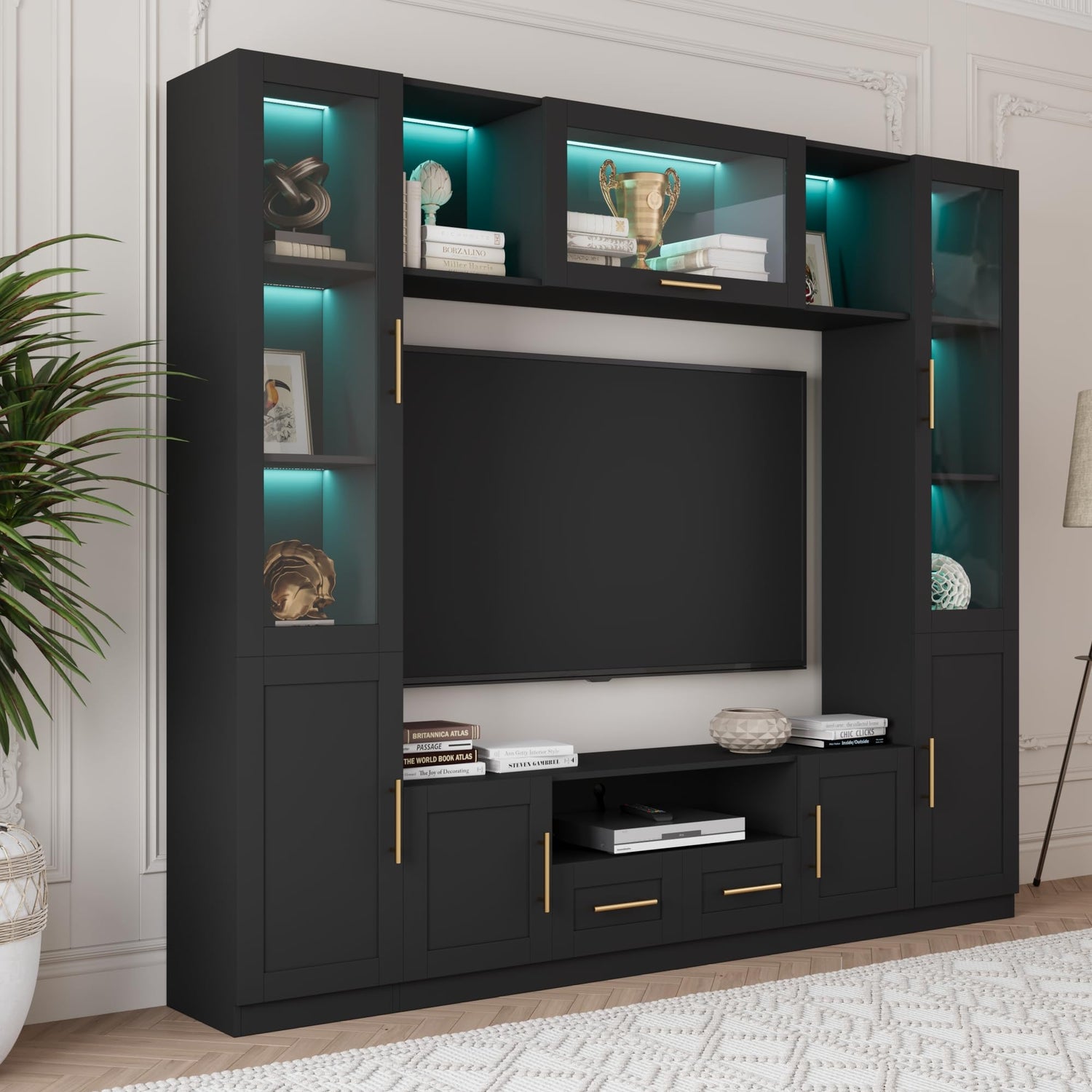 • 【Stable & Durable】This entertainment center wall unit is made of high quality MDF, stable and durable. 2 anti-tipping devices enhanced safety and stability. With friendly paint-free material, the smooth board surface is resistant to water and scratch, also easy for cleaning. Sturdy metal accessories and glass doors are in good quality, further enhances the durability and luxury of the entertainment center.