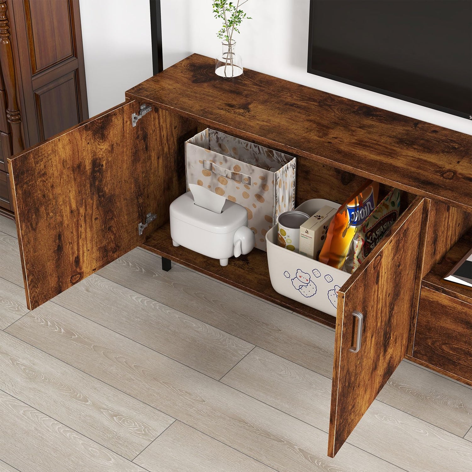 - Unique Design: The TV stand with storage features a black metal frame with a rustic brown finish for a perfect blend of modern and industrial, which can be incorporated into a variety of home styles to create a unique and stylish atmosphere.