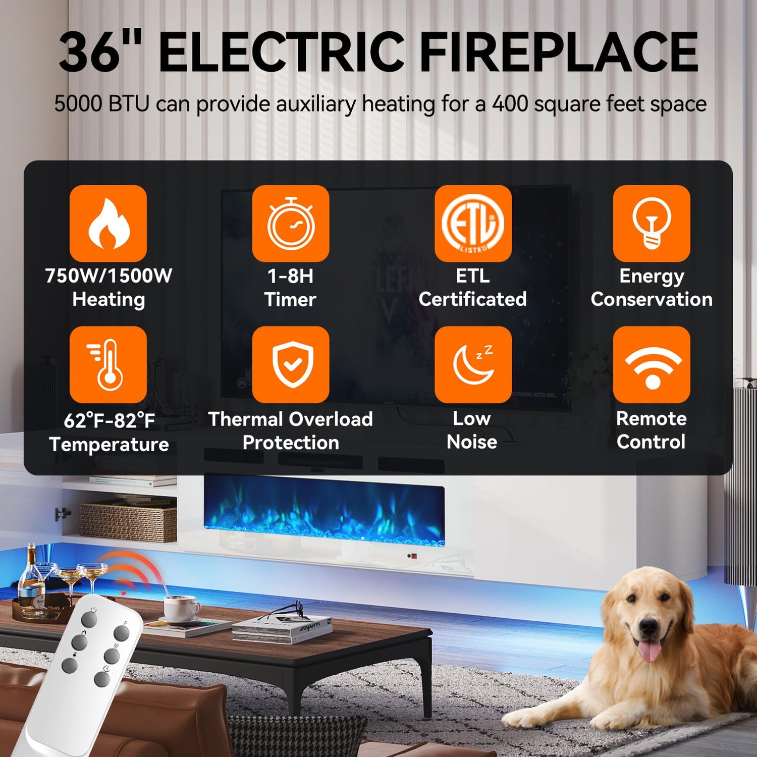 - Safety & Comfort: ETL Certificate Approved. This 36" fireplace has overheat protection to provide customers with a safe use environment, the supplemental zone heating is for up to 400 square feet.