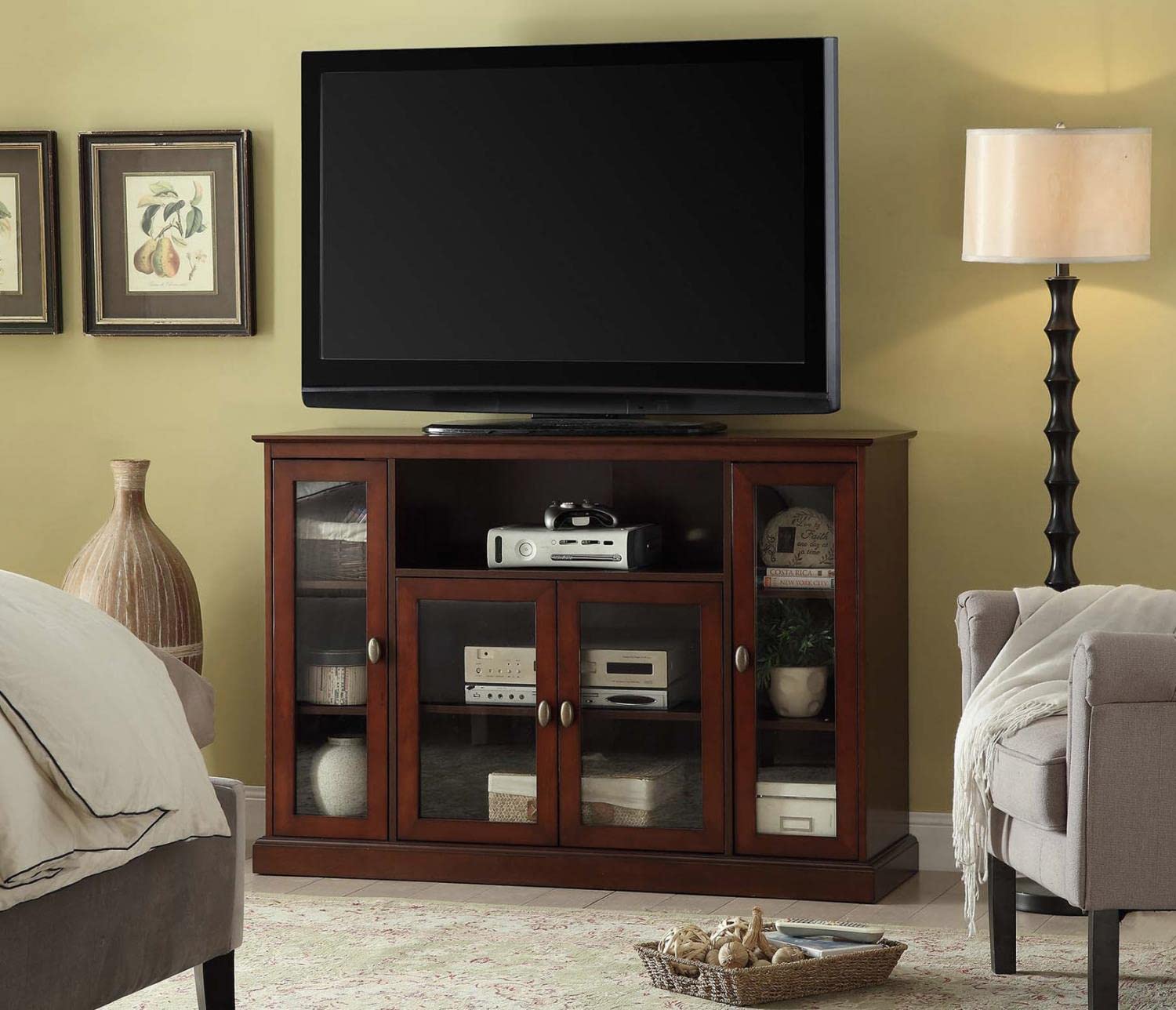 Details: The Designs2Go Summit Highboy TV Stand is the perfect complement to any living room décor. Featuring 8 shelves with a cable management that allows a plenty of space for organization of your media consoles. It also offers a broad top surface and 4 cabinets with tempered glass doors that will keep your equipment looking neat. Sturdy construction will allow for years of enjoyment.