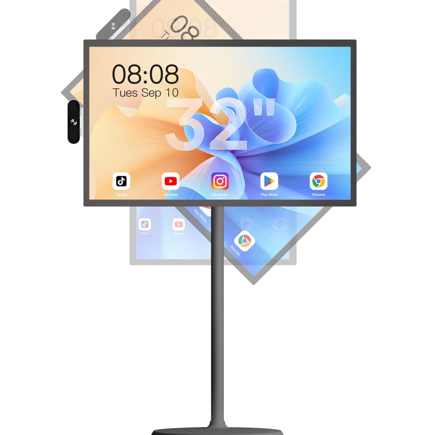 • Comfortable Viewing with Full Swivel Rotation: The screen of our mobile TV can move up and down, adjust vertically and horizontally, and tilt at various angles for comfortable viewing whether seated or lying down. Its mobile base with five wheels facilitates easy movement between different areas of your home or outdoors, ideal for browsing short videos, watching movies, playing games, reading recipes, or exercising.