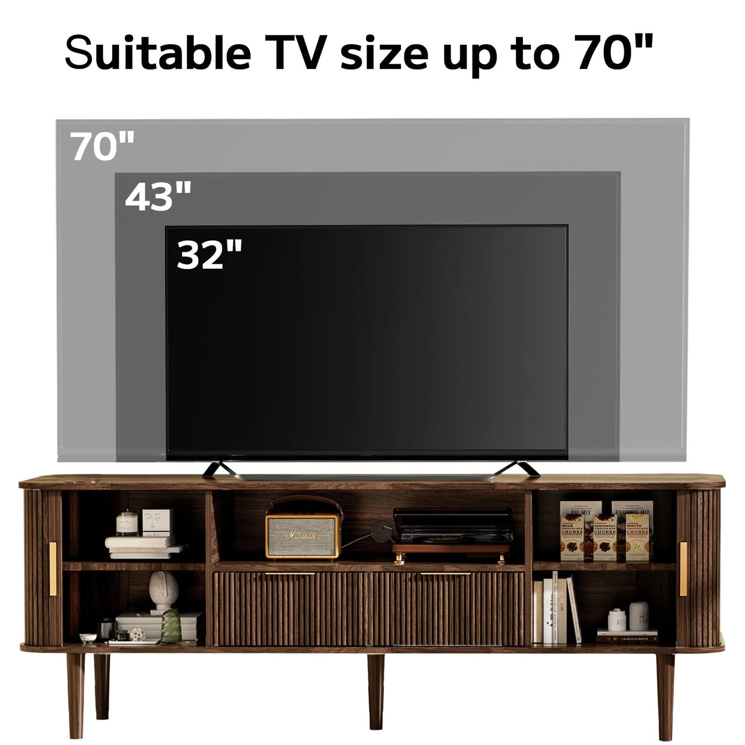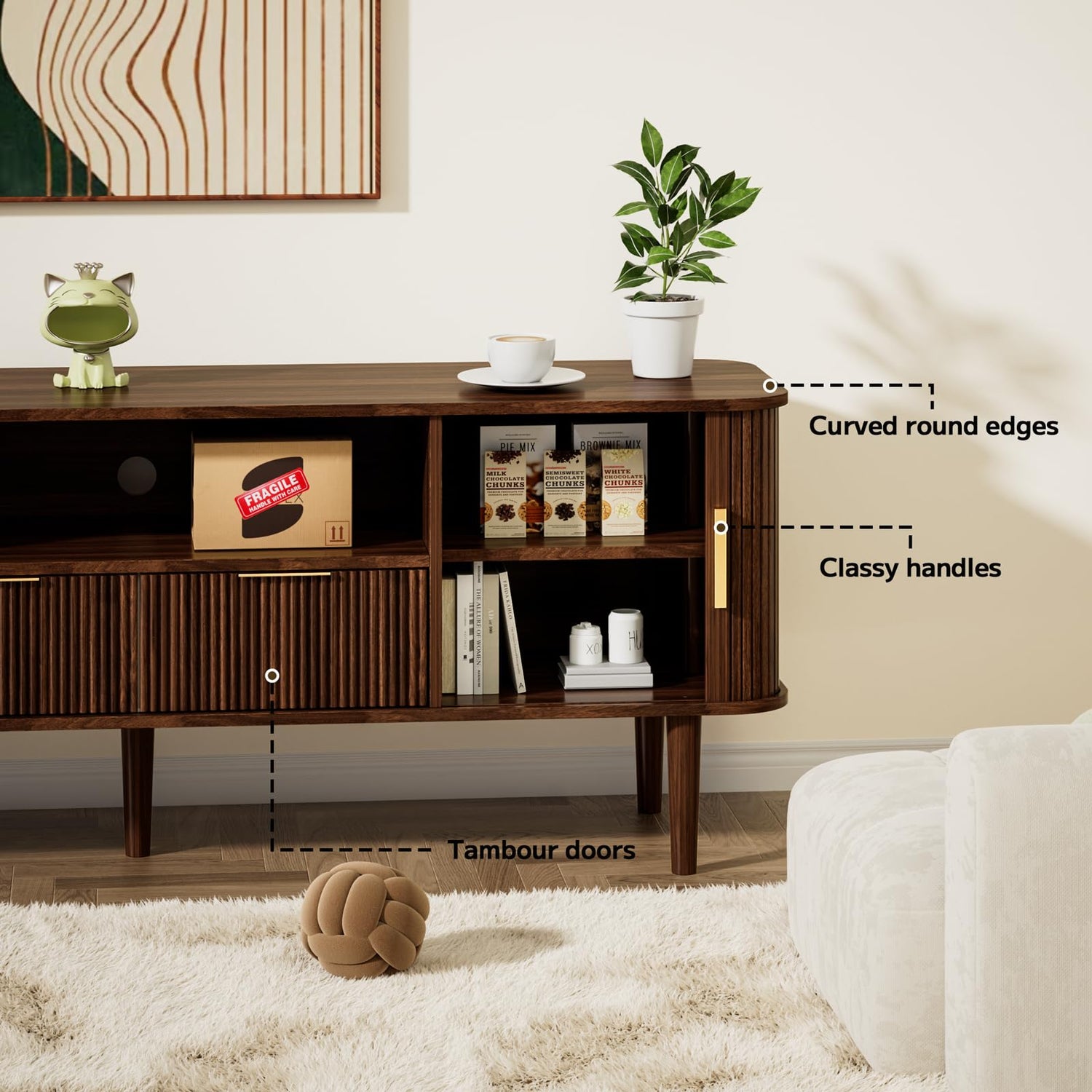 - Media TV Console: With tambour sliding door, this innovative design saves space but also enhances accessibility, making organization effortless and stylish. Wood tv stand with sleek curve round edge offer an environment safe for kids and family