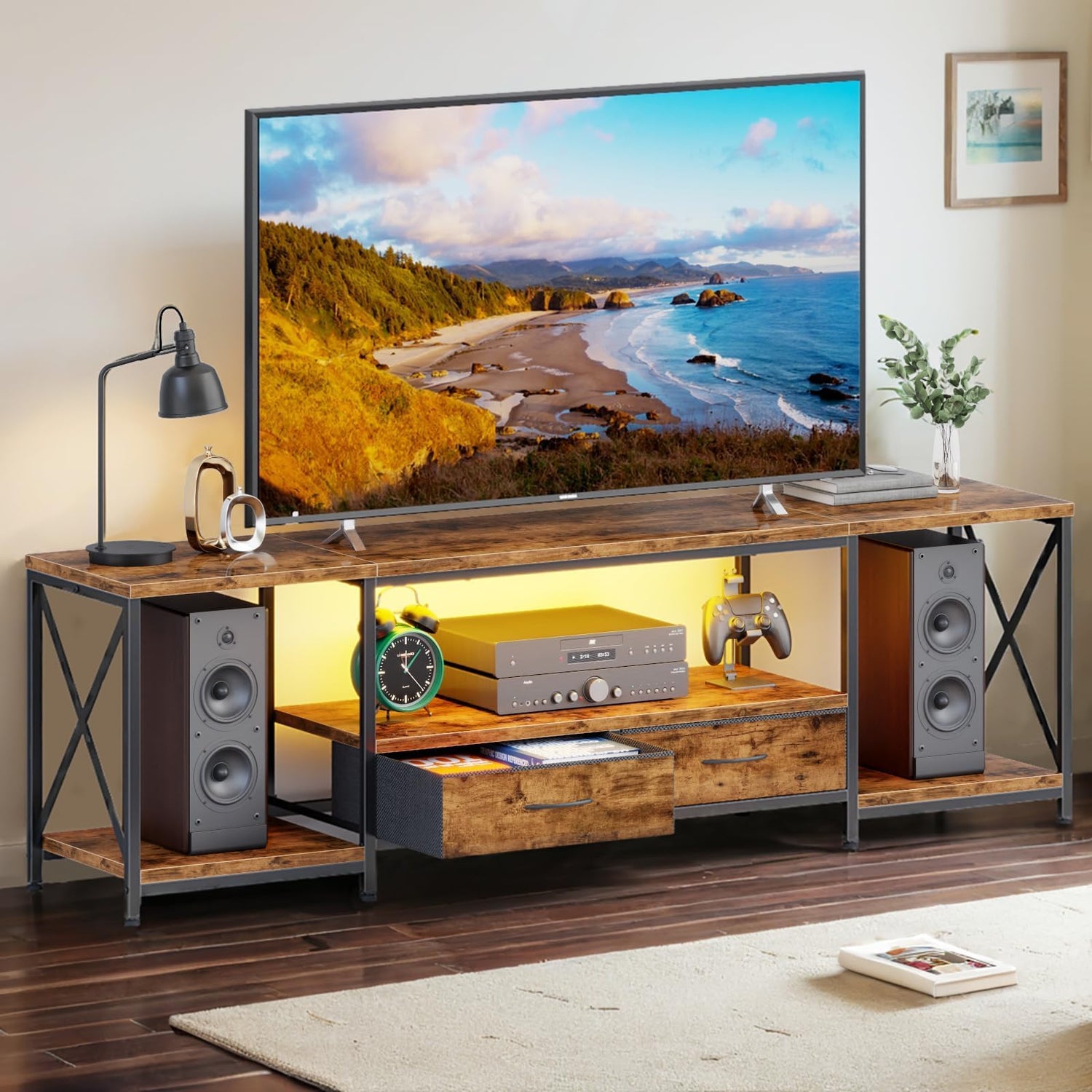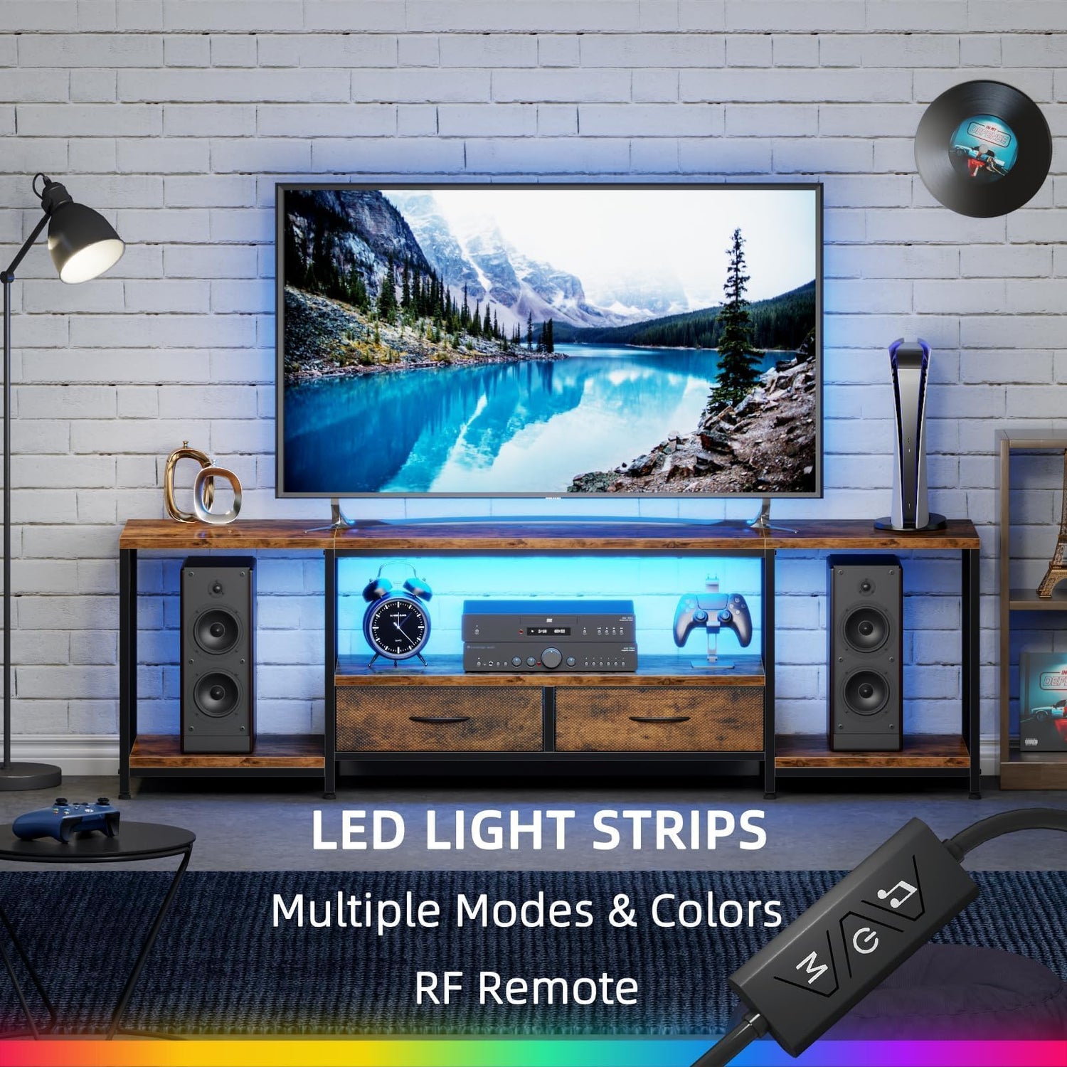 DSAFGGY LED TV Stand with Fabric Drawers, Entertainment Center for 55 60 65 Inches Television Stands with Storage Shelves for Living Room, Bedroom, TV Console Table 55" Rustic Brown
