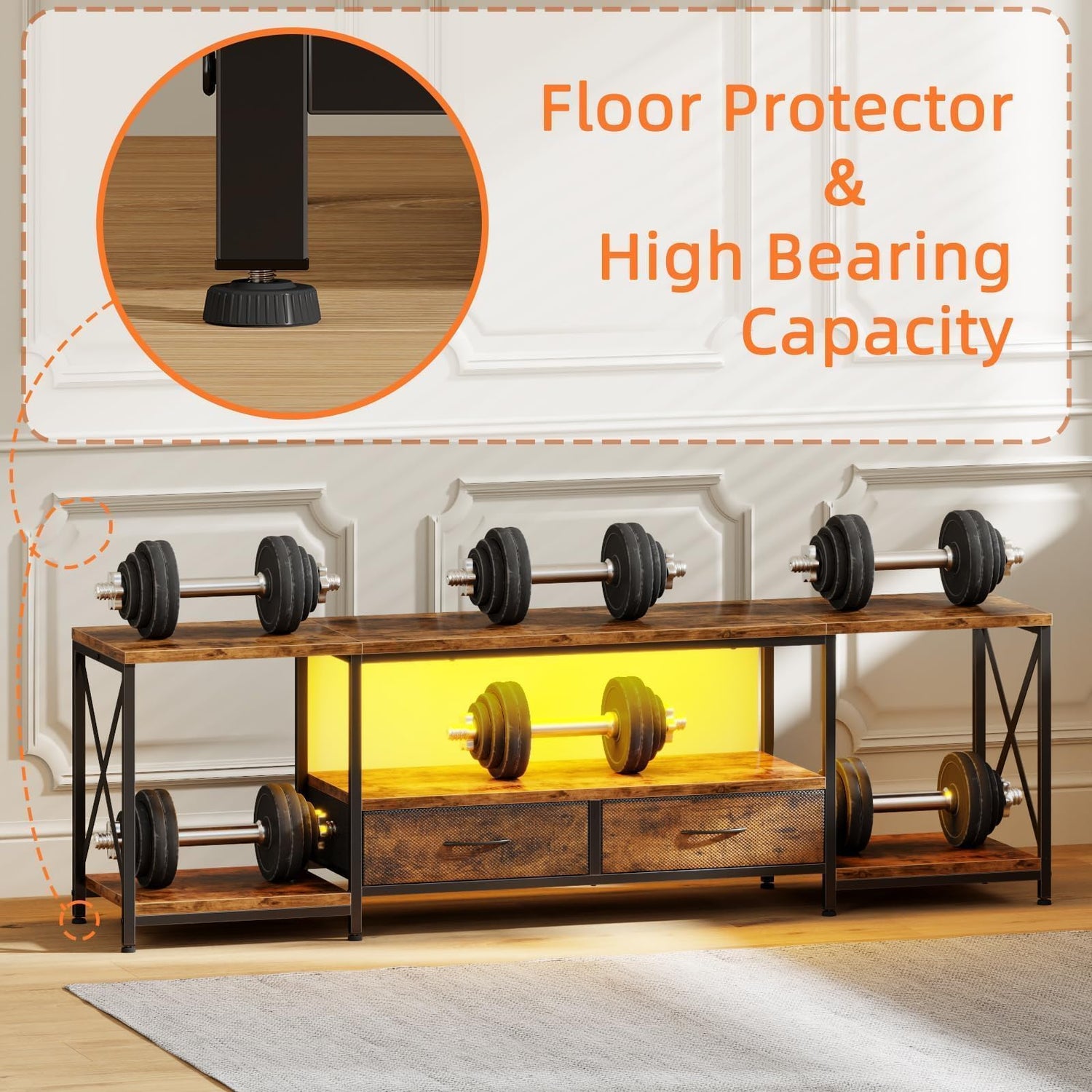 - Gaming & Entertainment Center: Featuring a second-floor countertop and two drawers, this tv stand 65 inch offers ample storage space for game consoles, cassette tapes, CDs, records, and more, making it a haven for gaming and entertainment enthusiasts.