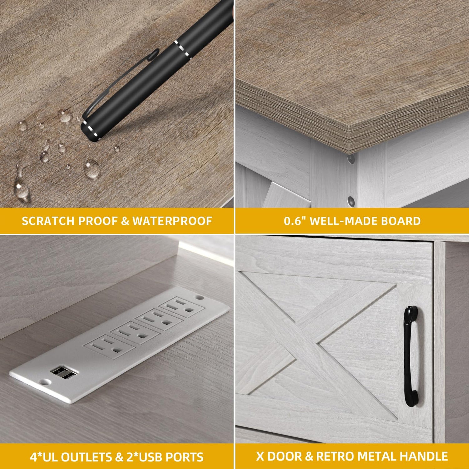 - Power up with Ease: Our farmhouse TV stand features built-in power outlets and USB ports, ensuring handy charging for all your devices. From TVs to routers, keep everything juiced up and ready to go