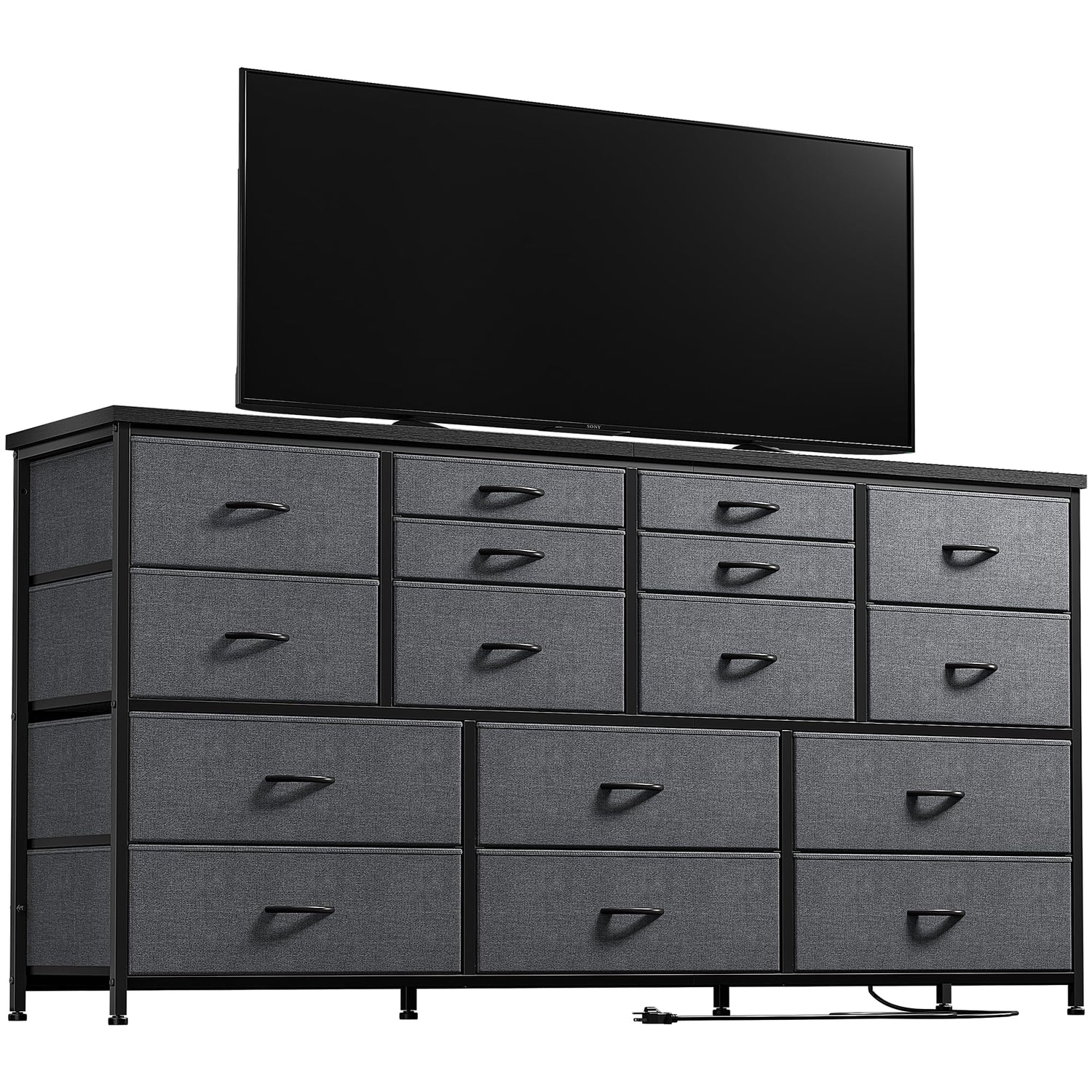 EnHomee TV Stand Dresser 60''TV Stand with Charging Station TV Stands for Living Room Long Dresser for Bedroom TV Stand with 16 Drawers Storage TV Stand for Bedroom Dresser 51.1''W*11.8''D*34.8''H