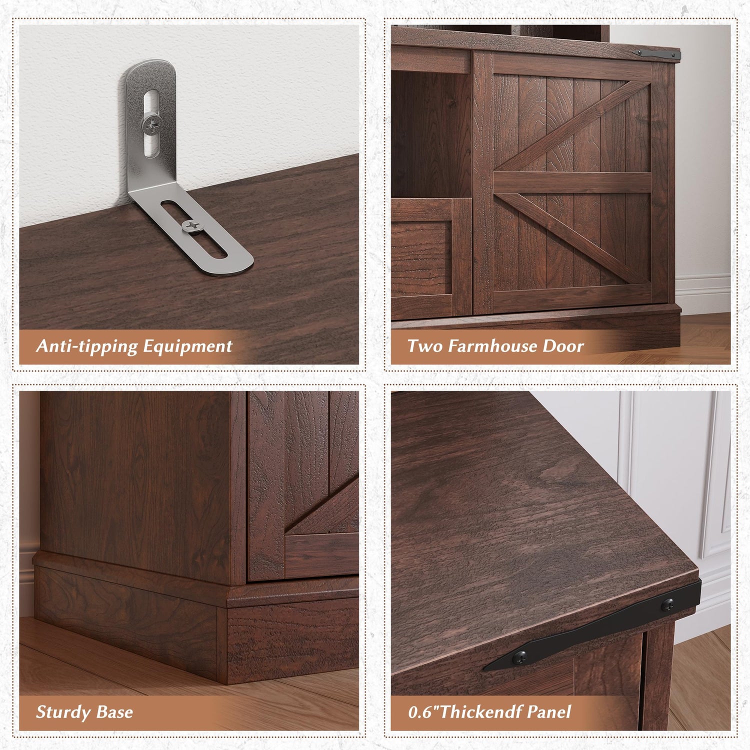 - 【Extensive Storage Space】This TV console perfectly combines modern, and rustic farmhouse style. This farmhouse TV stand includes a display cabinet, a bookshelf, a wine cabinet, two farmhouse doors, 2 large storage space and a 60 inch Wide TV console, is ideal for entertainment center with bookshelves, offering a practical and versatile solution for your space