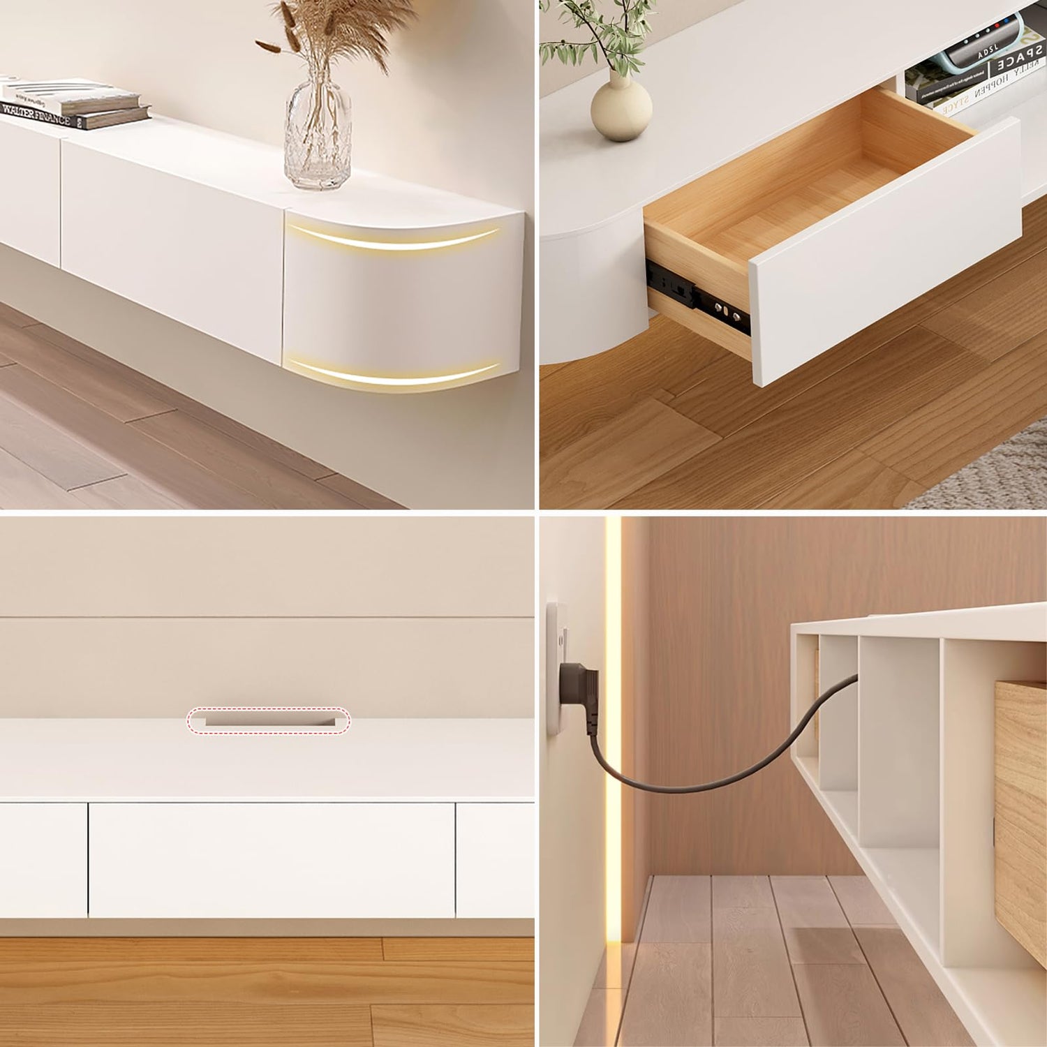 - 【Sleek and Modern Design】This floating TV stand features a contemporary design that perfectly complements any modern bedroom or living room decor. Its minimalist aesthetic is both elegant and stylish, while maximizing space.