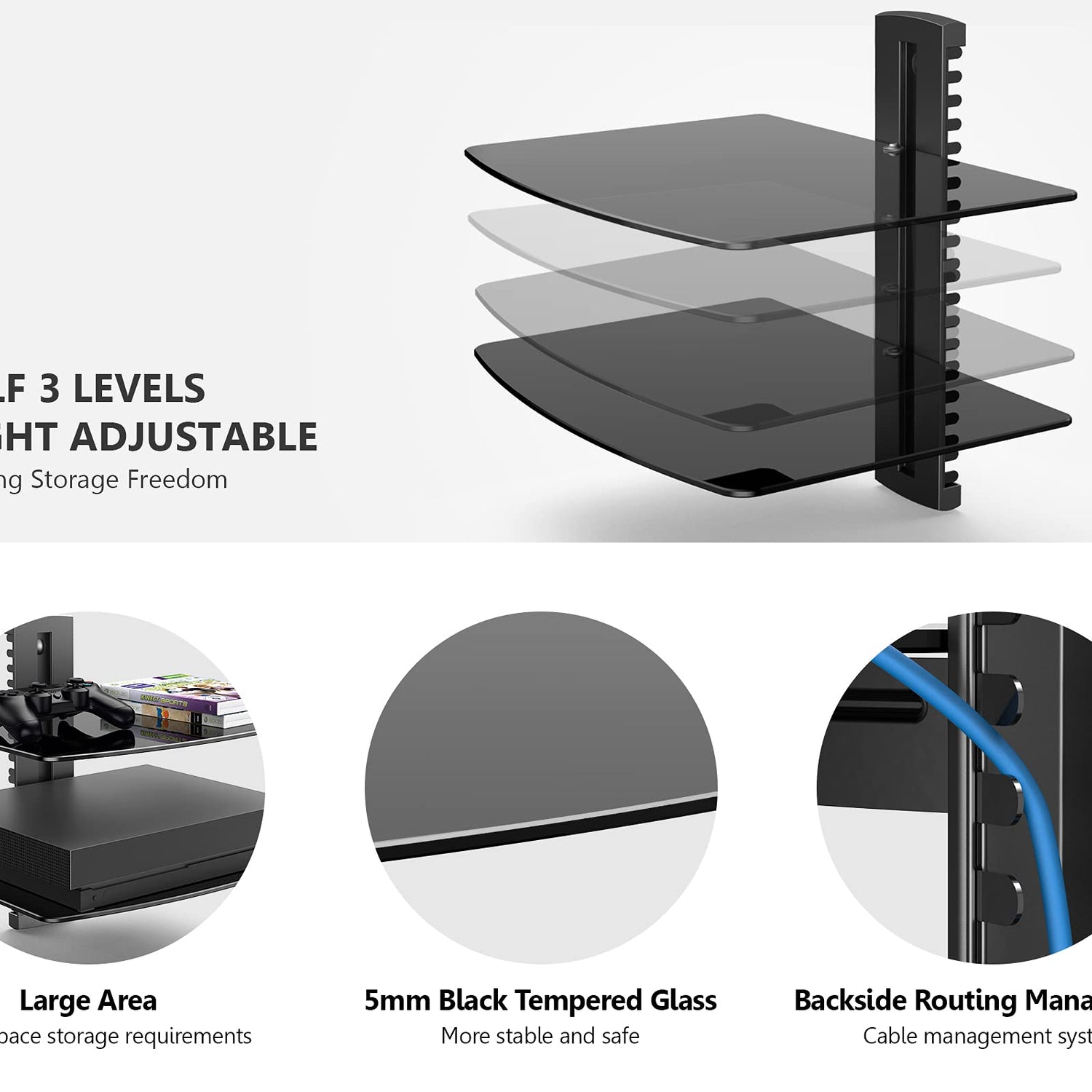 - Stepless Adjustment: The shelves of this foloating entertainment center is stepless adjustable, it can be adjusted you want to fit most of your devices