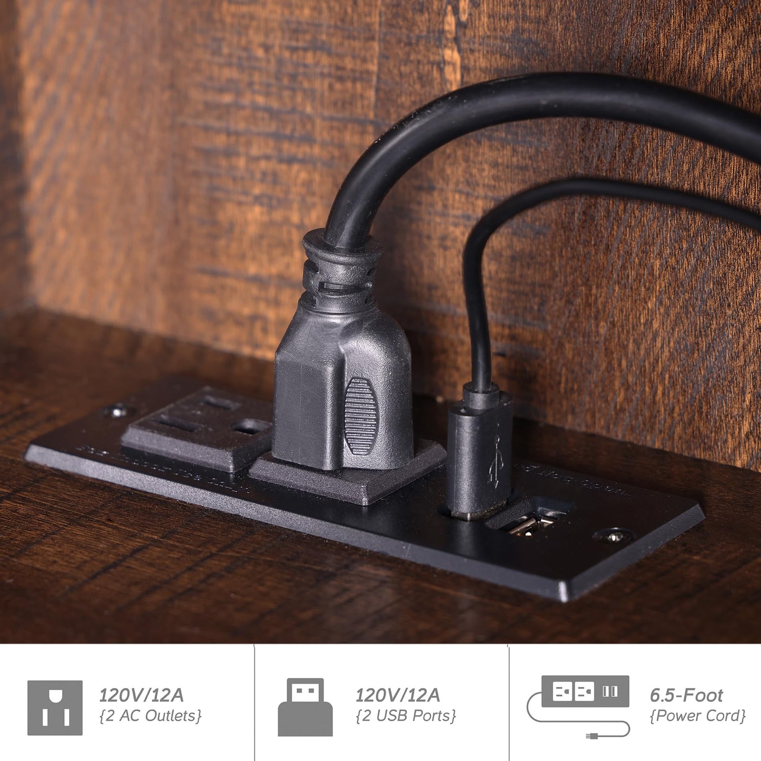 - 【Floating TV Stand with Charging Station】The built-in power strip with 4-outlets provides convenience for charging your TV, DVD, phone and etc. The shelves offer wire management to keep your cords from getting tangled and make it easy to plug in all of your devices.