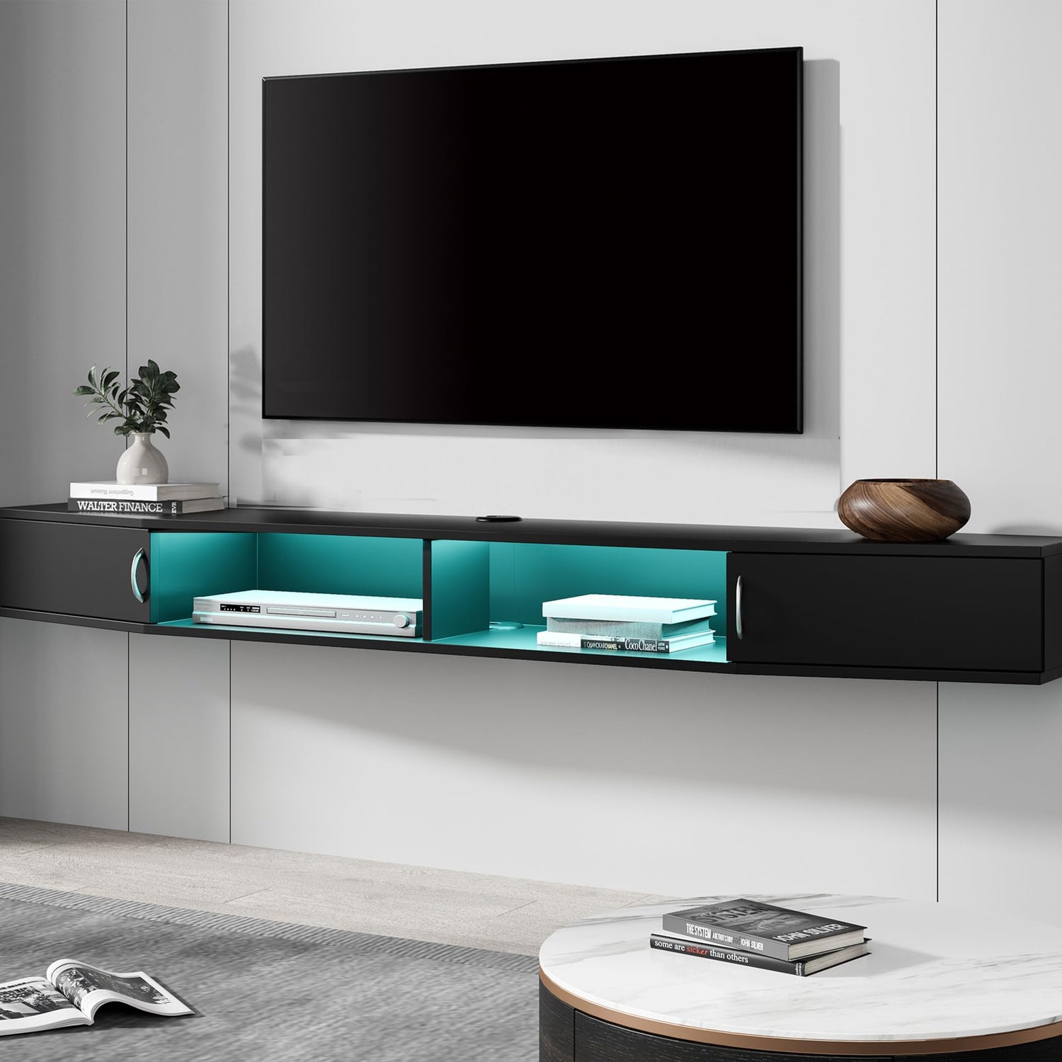 • 【MUTIL STORAGE & HIDDEN CABINET】: Featuring storage spaces, this wall mounted tv shelf is perfect for holding TV components, gaming accessory, books, decors. Hidden doors on both sides can skillfully keep privacy, center door the clutter for game consoles, stereo, DVD player, CDs.