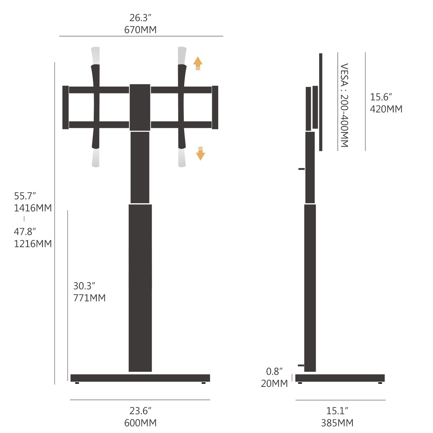- Notice before buying - Will it fit LG TV? Sony? Vizio? Samsung? Not a problem. Make sure your TV meet the following conditions: TV Compatibility: Fits most 32 to 70 inch flat-panel LCD/LED/Plasma TVs up to 88lbs. VESA(mounting hole pattern): 200(w)x200(h)-600(w)x400(h)mm. Height Adjustable:2 types of height adjustment, height range: 47.8- 55.7 inches.