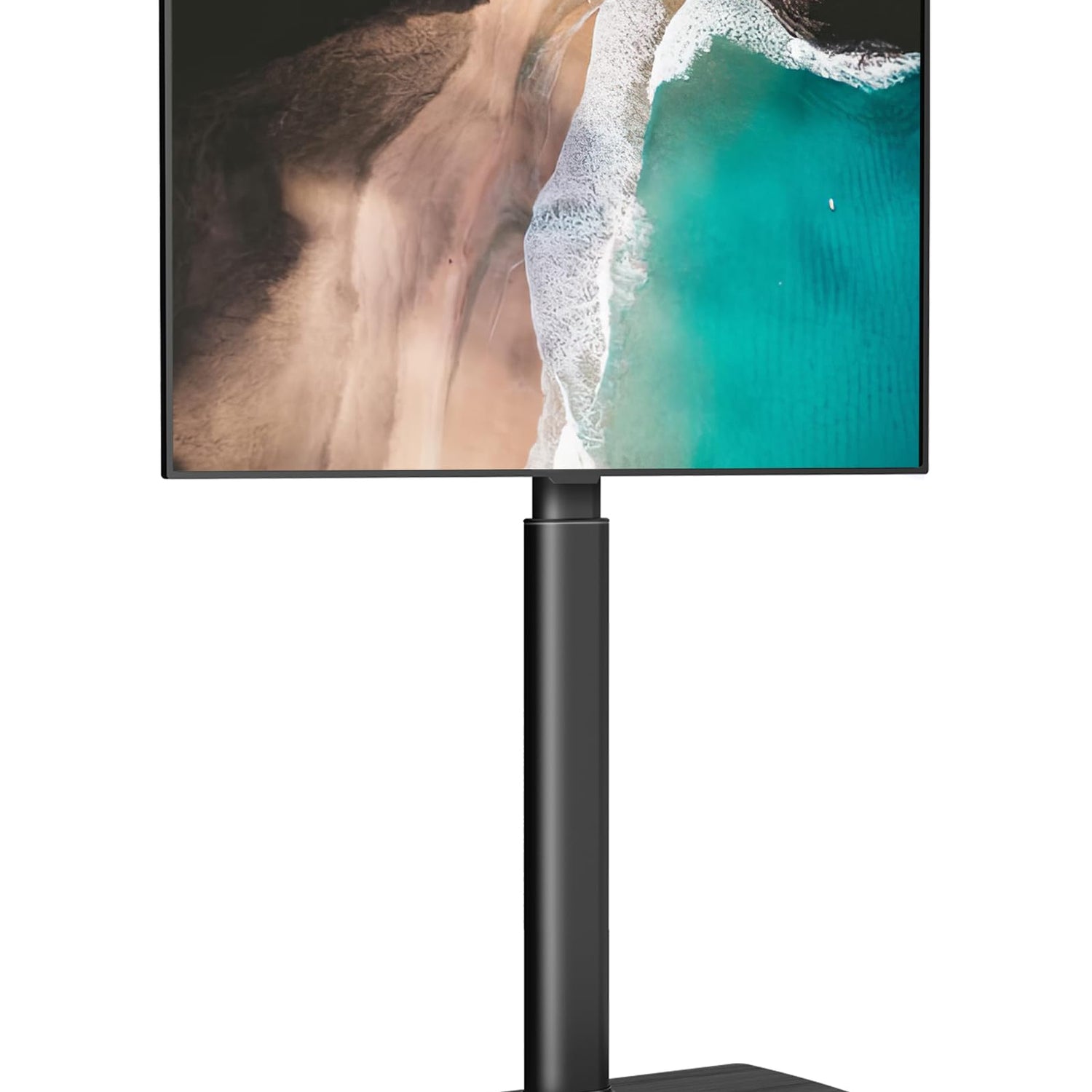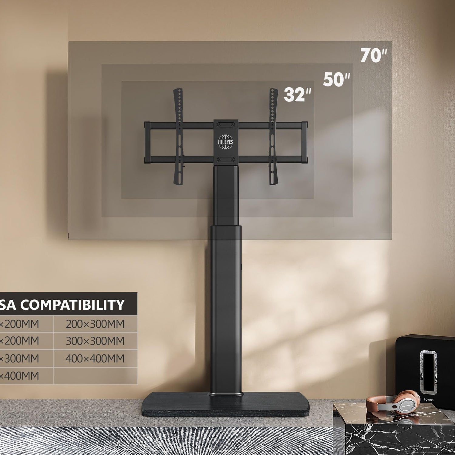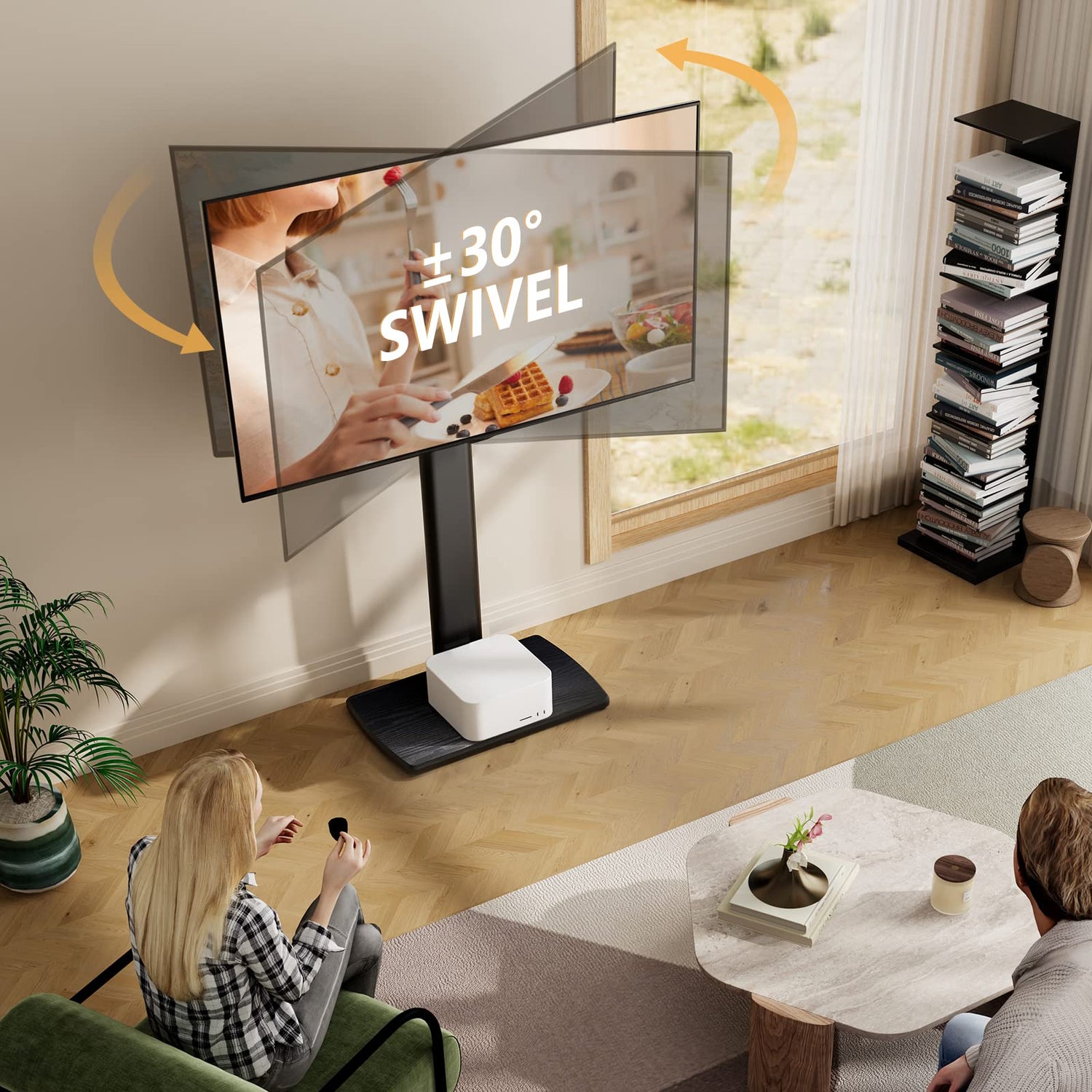FITUEYES Floor TV Stand for Living Room, Bedroom, Tall Corner TV Stand Mount with Sturdy Wood Base for 32 to 70 Inch TVs, Swivel, Height Adjustable, Holds 40kgs, Black