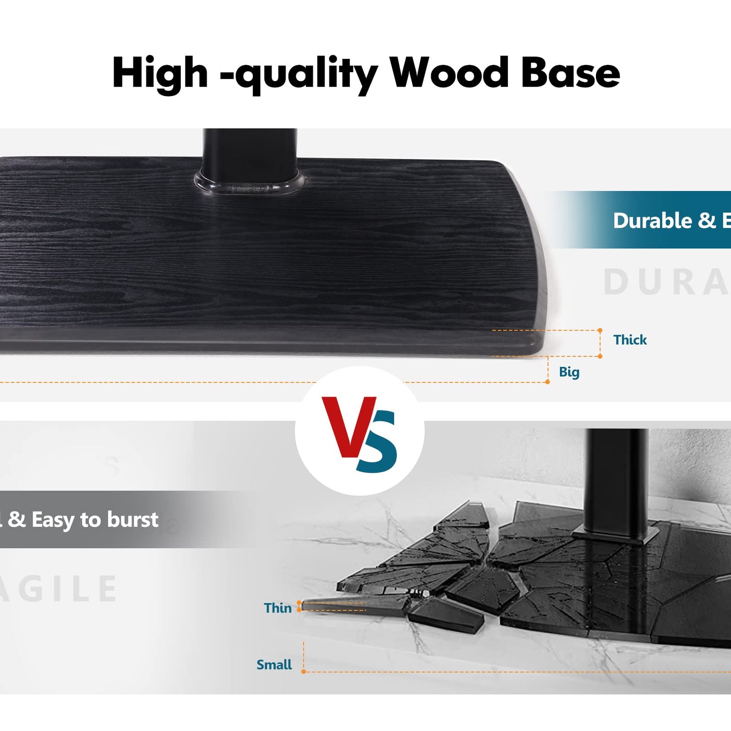 - Robust Material: Heavy-duty steel tube and thick wood base provide exceptional stability and a stylish look, supporting TVs up to 40kg. Safety lock to prevent accidental movement or tampering