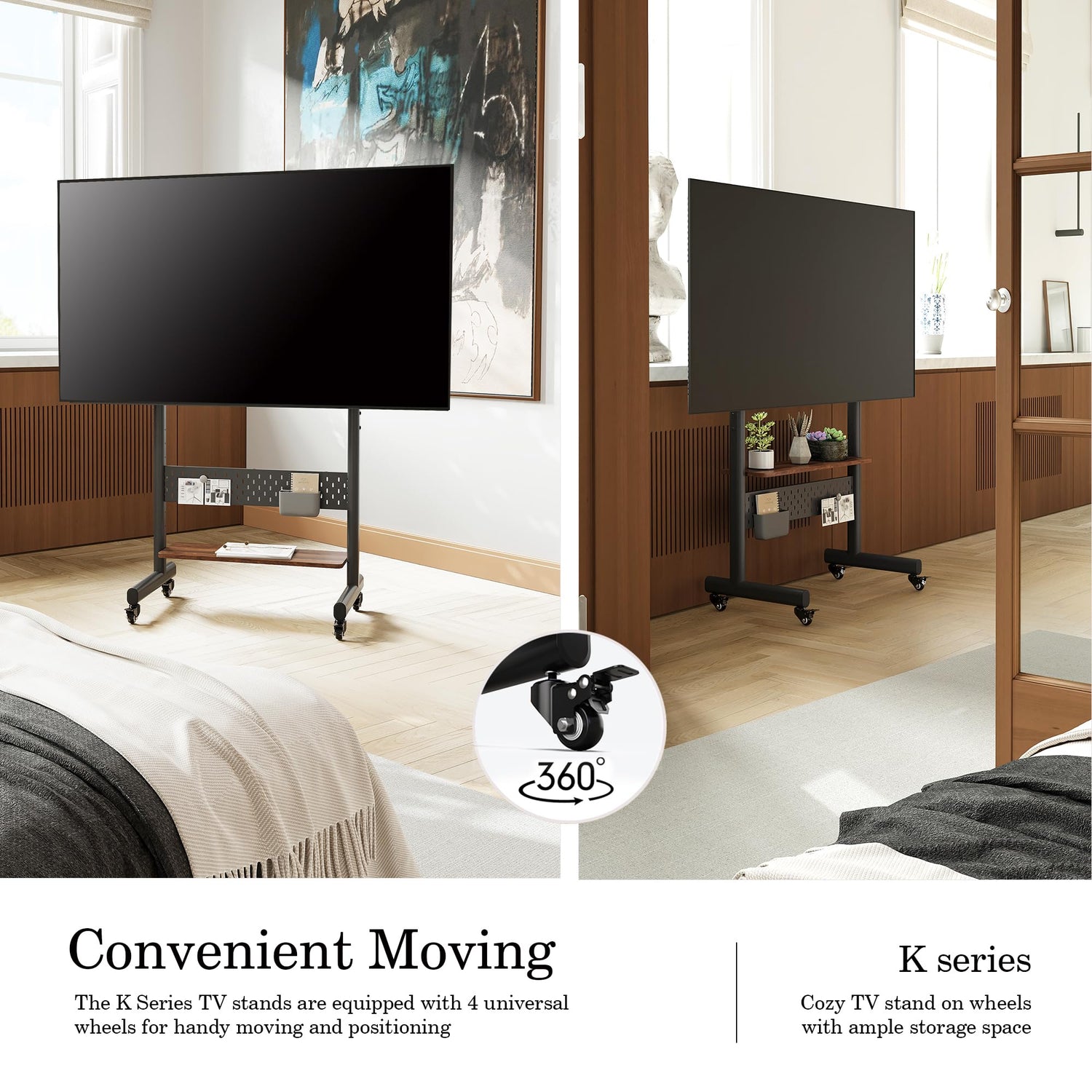 - Flexible movement: This rolling TV cart is equipped with 4 silent wheels for flexibility. You can hold the stand with lockable wheels in different scenarios such as bedroom, living room, kitchen, bathroom, office and so on