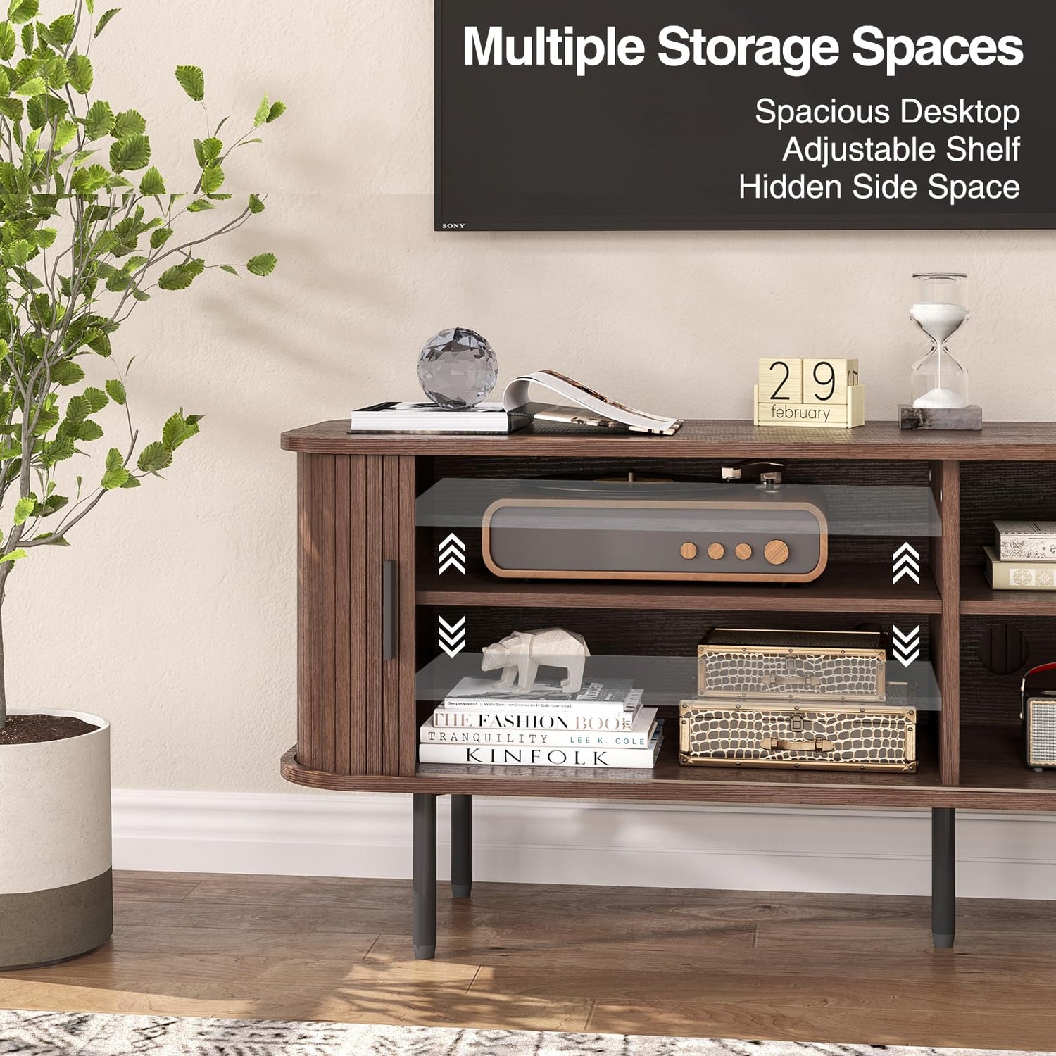 FiveWillowise 55" Mid Century Modern Fluted TV Stand for TVs up to 65 Inch, Gaming Entertainment Center with Tambour Slatted Sliding Doors, Media TV Consoles Table for Living Room, Walnut