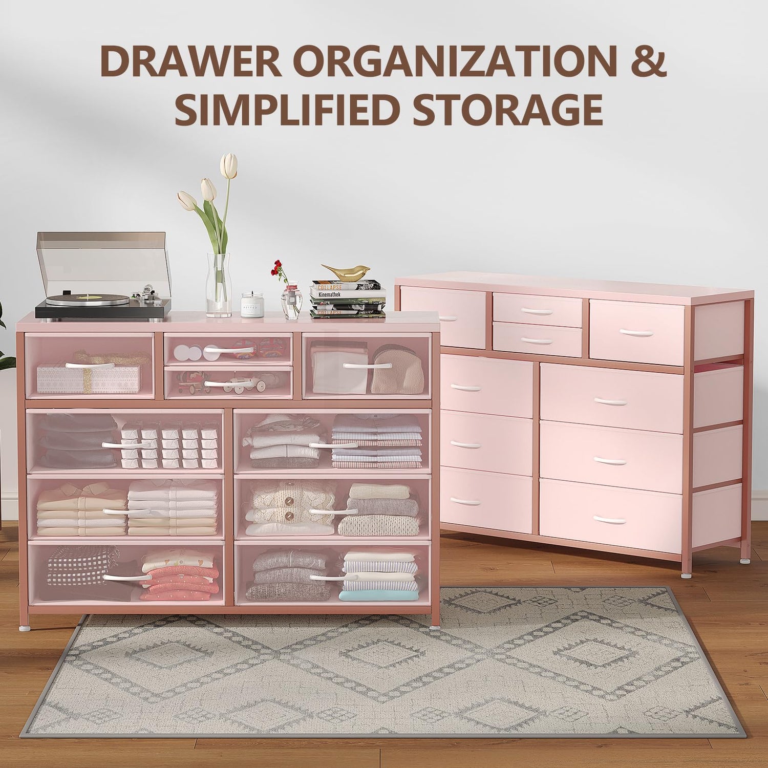 GAOMON Dresser for Bedroom TV Stand for 55” TV, Entertainment Center with 10 Drawers, Storage Organizer Unit for Living Room, Closet, Entryway, Hallway (Pink)