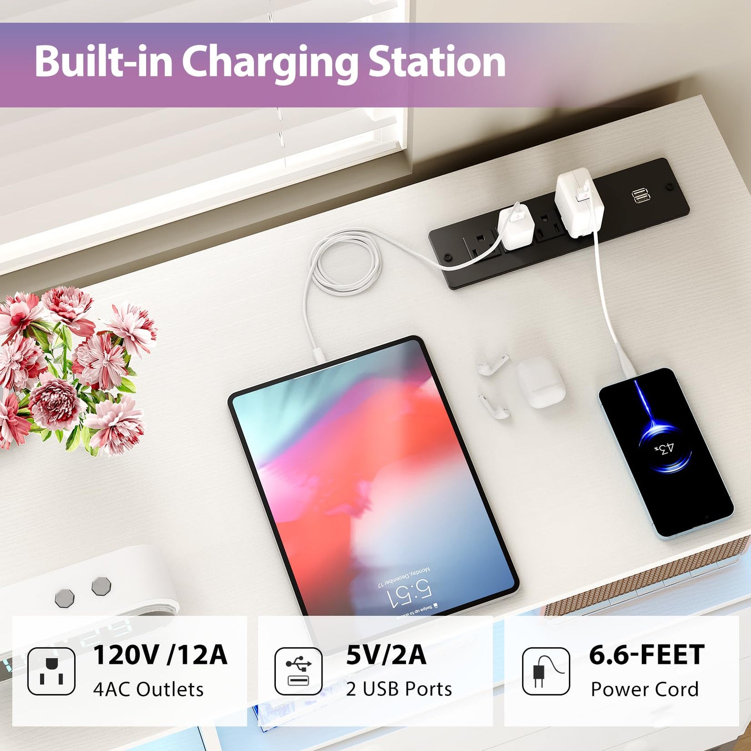 - Convenient Charging Station: Equipped with 4 standard plug outlets and 2 USB ports, this dresser allows easy charging of mobile phones, tablets, and Bluetooth headsets, reducing messy wires.