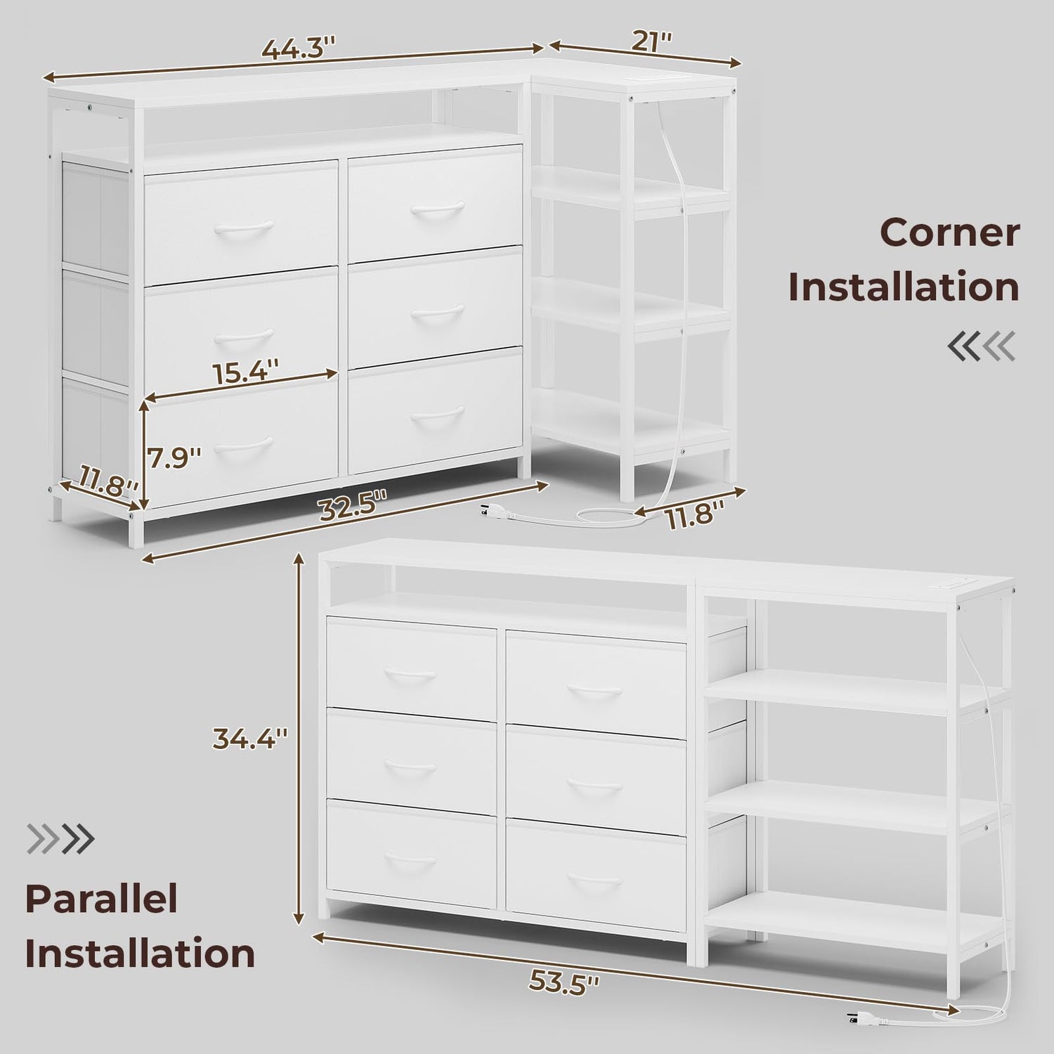 - 【Reversible Dresser】Choose 44.3 inch corner dresser or 53.5 inch long tv stand: L Shaped dresser is perfect for tucking into a corner,53.5 inch long tv stand is suitable for TV up to 60" . The 4 tier open storage rack can be placed left or right to your needs.Kindly note that the storage shelf can be used as an individual product.