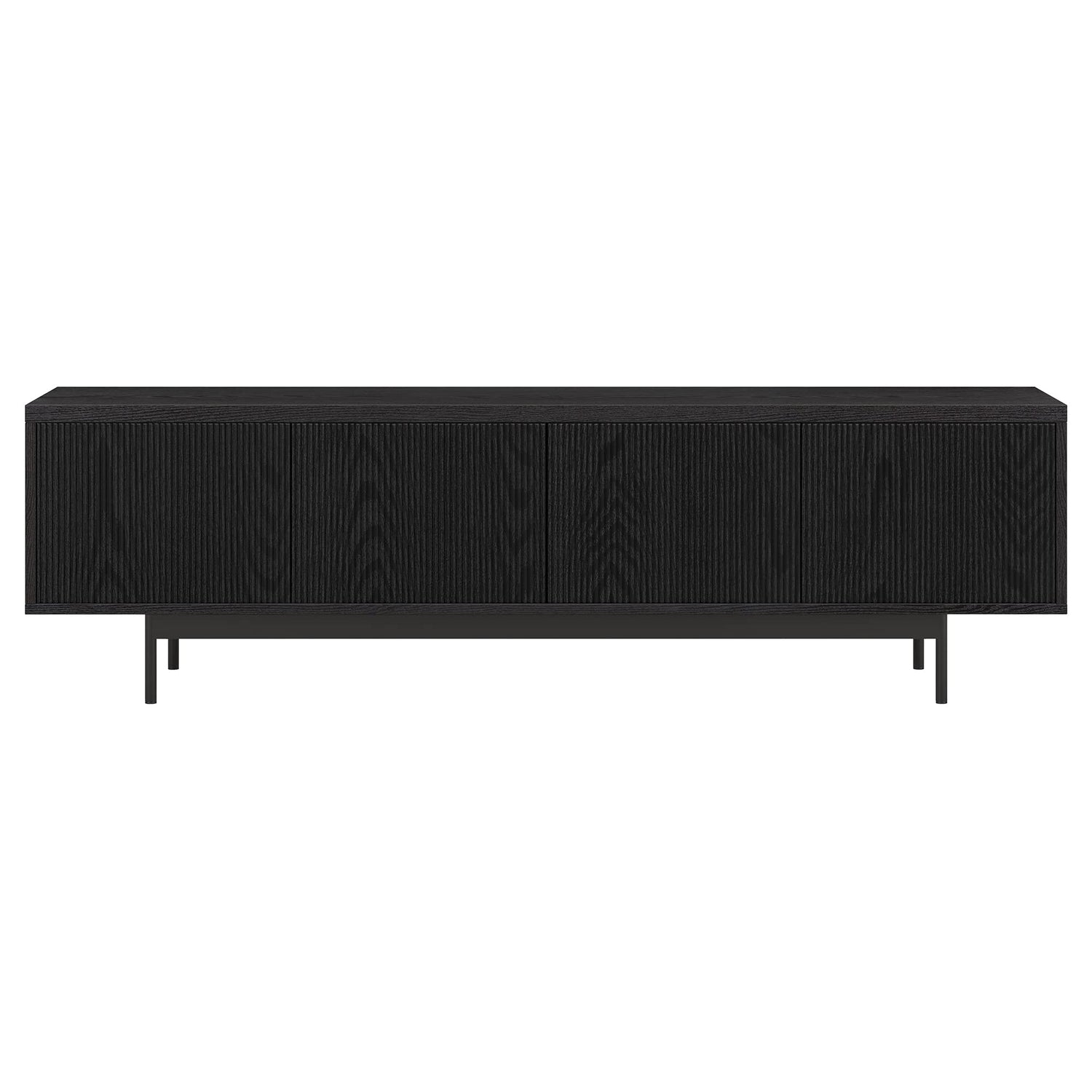 Details: On-trend texture and design combine in this modern TV stand. With a wood grain finish and textured doors, this piece is perfect for your mid-century or minimalist-inspired living room, den, or game room. It's low 20" height leaves plenty of room above for an oversized wall-mounted TV or set of statement lamps. This stand features cable-management cut-outs and 4 fully enclosed doors with an open inside area, allowing for free-form storage of your devices, games, books, and more.