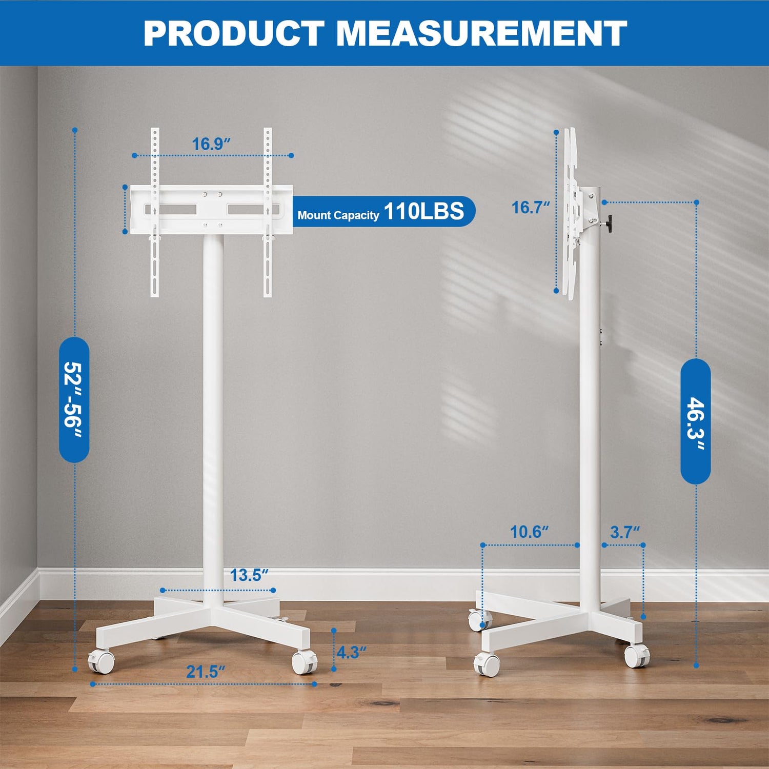 • Space Saving Design: The base of this mobile tv stand on wheels is relatively low and can be placed behind a tv cabinet or workbench. The front long and back short base design greatly reduces the risk of the tv tilting forward. It not only improves overall stability but is also very close to the wall. You can use the white tv stand for bedroom in small spaces such as apartments and dormitories. Of course, this rolling tv cart also a good choice for shopping malls and offices.