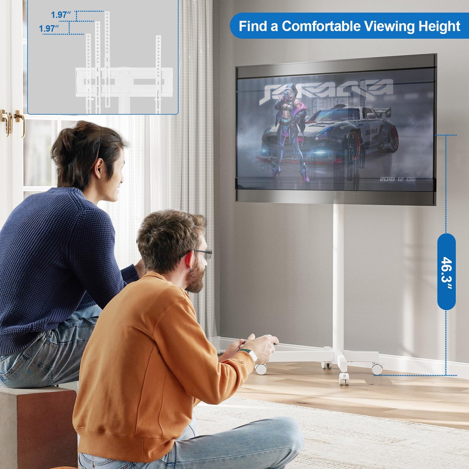 • Suitable Viewing Angle: The brackets of this floor tv stand has 3 ways to adjust the height. This is suitable for most people's viewing height. If you like to sit on the floor watching TV or playing games, you can get a lower height without installing the middle pole (please refer to the instructions). You can use tilt function of tv rolling stand to make a horizontal adjustment of the TV after installation. Also a tilt angle of -2° to +10° can alleviate discomfort in your neck during viewing.