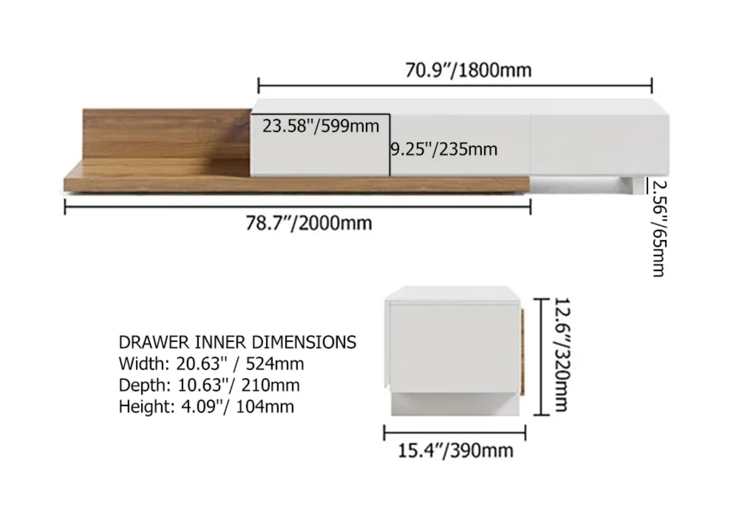 - Sleek and Sophisticated: Featuring a sleek design with a white and walnut finish, this TV stand adds a touch of elegance to any room