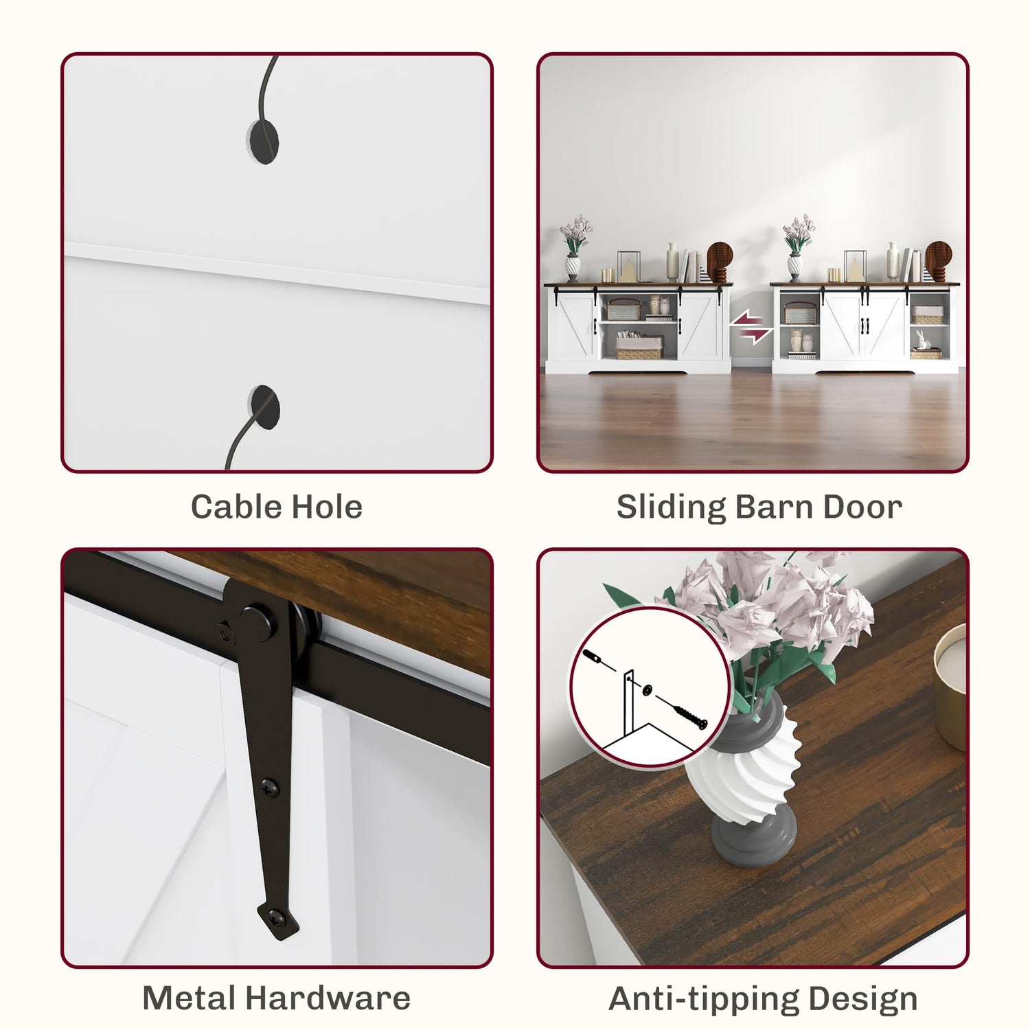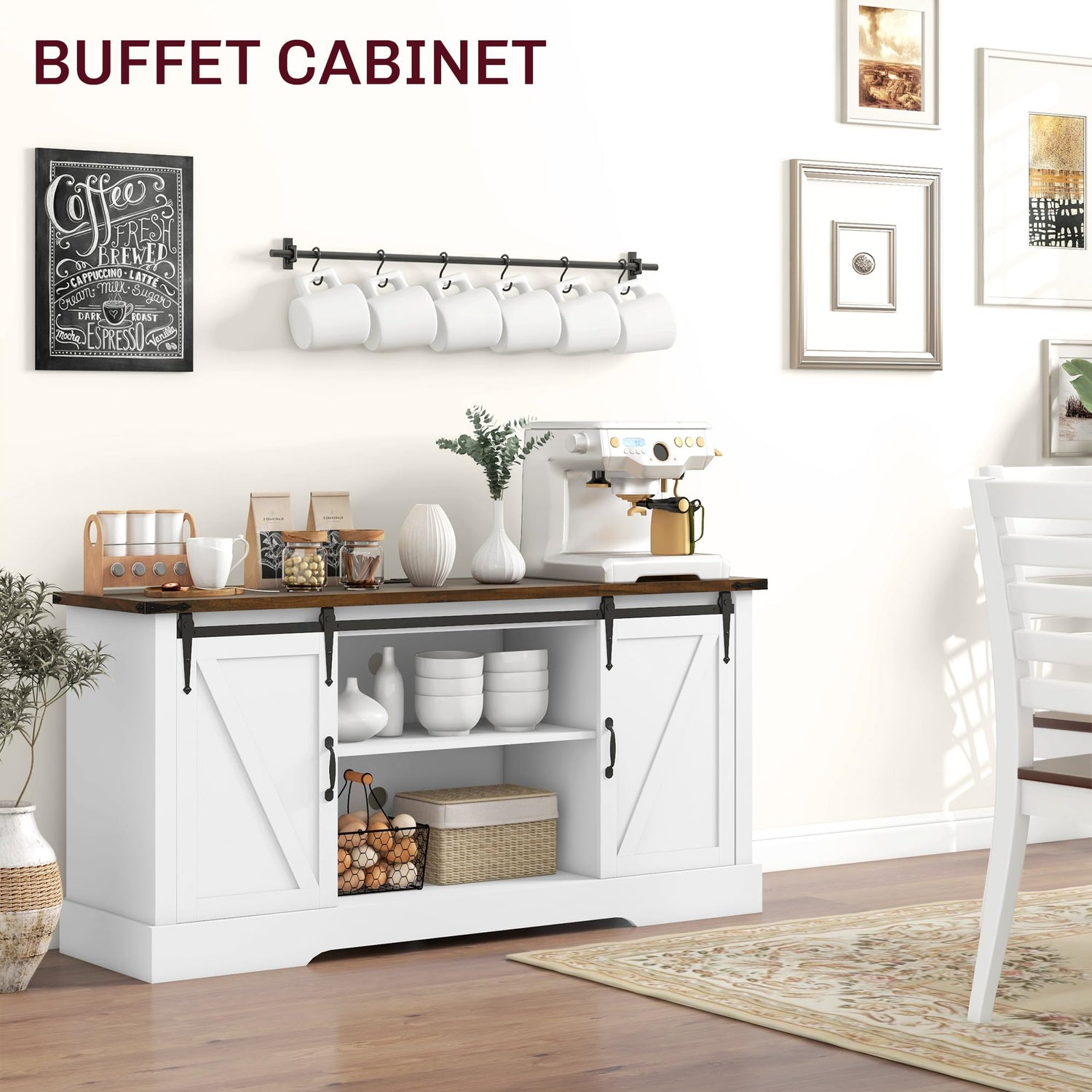 - Large Storage: This farmhouse credenza measures 59.1" x 15.7" x 28.3" it includes two middle open compartments and two side cabinets. Each side cabinet has a removable, adjustable shelf. The middle open cabinet features two cable management holes for organization.