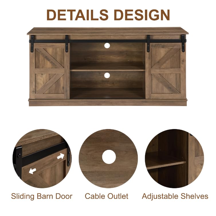 Homy Casa TV Stand for 65'' TV, Sliding Barn Door Modern & Farmhouse Wood Entertainment Center, Mid Century Storage Cabinet Table for Living Room with Adjustable Shelves, Natural Brown