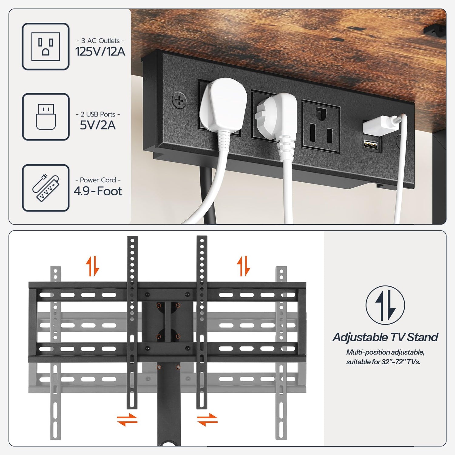- With Sockets and LED Lights: The TV cabinet features 3 AC outlets and 2 USB ports for devices like TVs and routers, along with cable holes for neat wiring. Its adjustable RGB LED strip is Bluetooth-enabled for smartphone control and syncs with audio