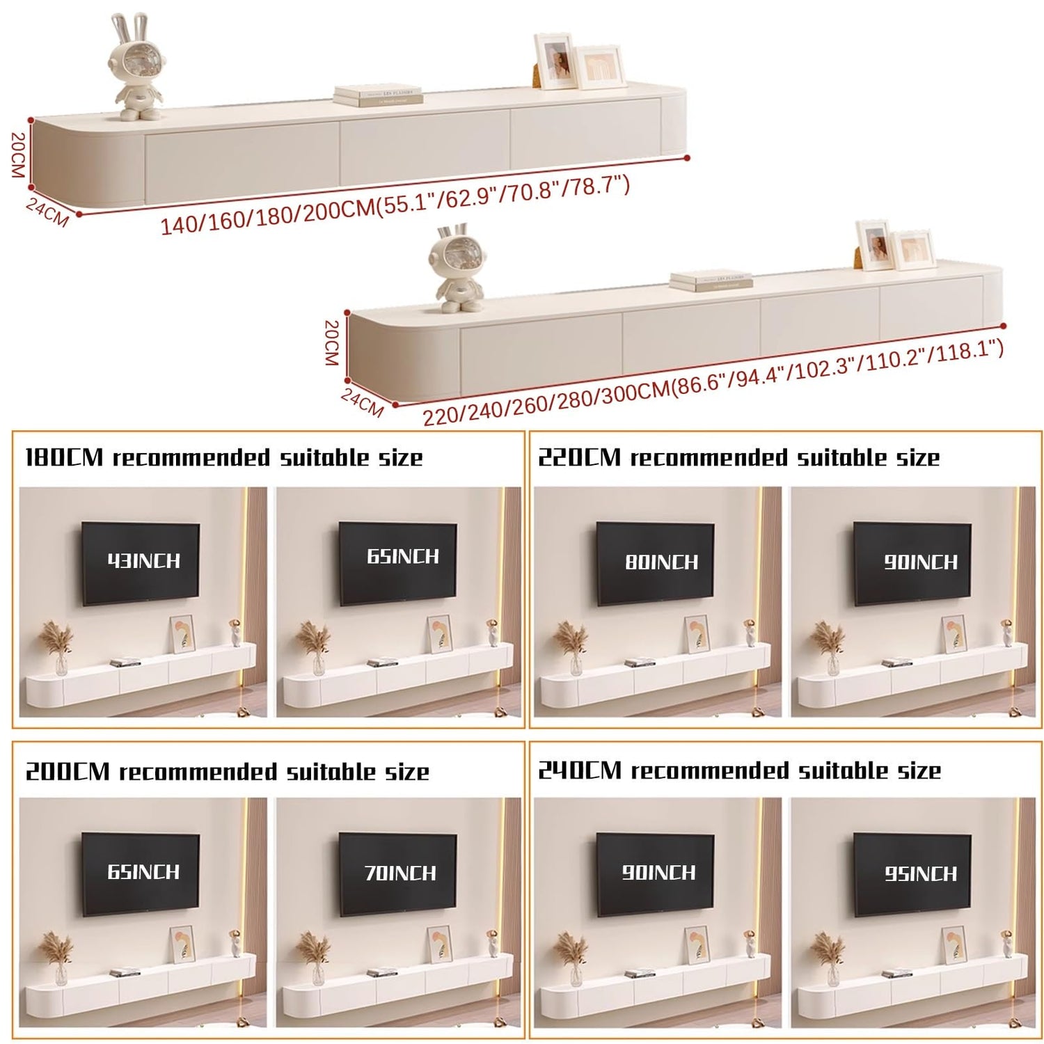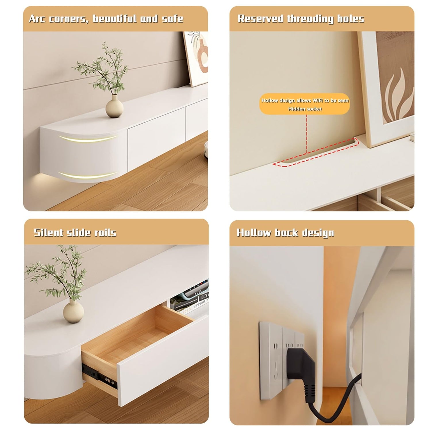 - 【STYLISH & SAFETYFloating tv unit can be arbitrarily matched with various furniture. Smooth and simple design will add elegance and vitality to living room. Anti-collision design with rounded corners can protect your family and children.