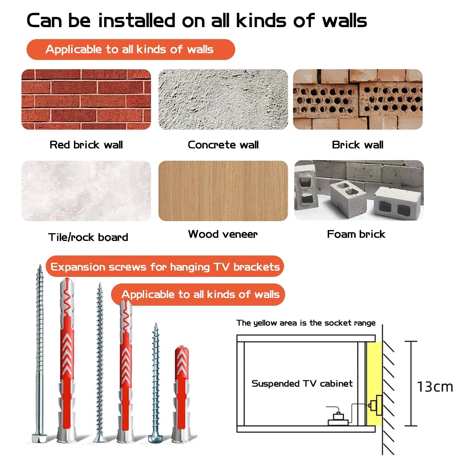 - 【HIGH QUALITY MATERIAL】It is made of solid wood composite board, without fading, with smooth surface. The TV wall frame is solid and wear-resistant, and can be used for a long time. It is equipped with standard wall-mounted accessories and high-quality hardware to make it strong and durable.