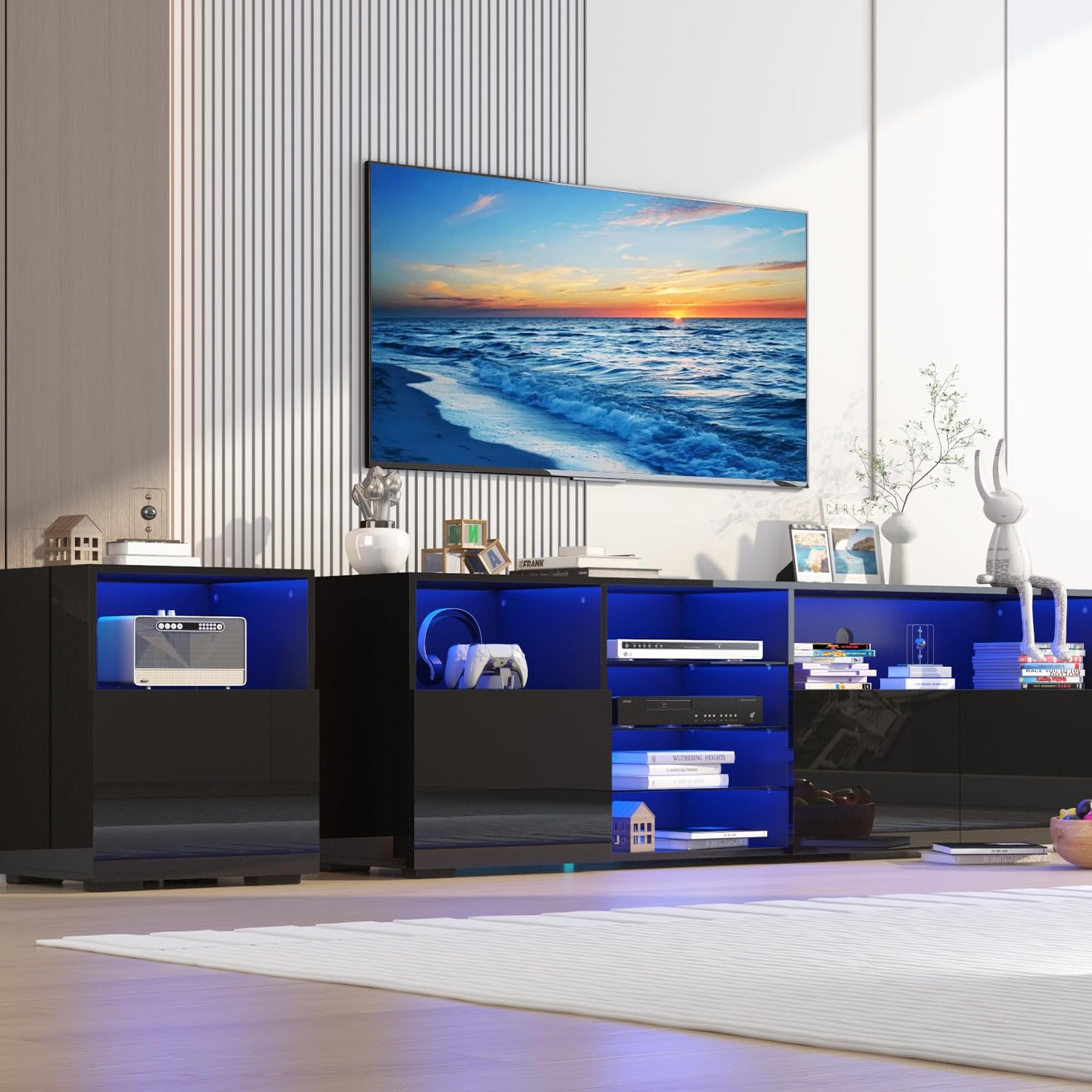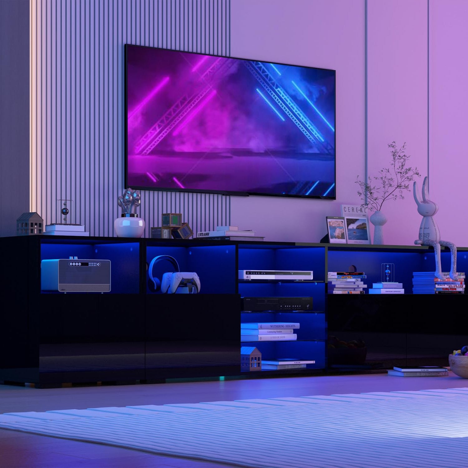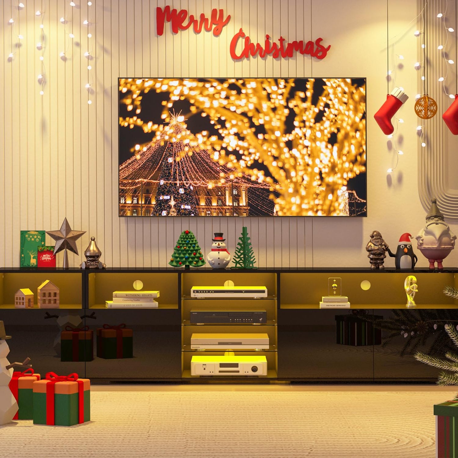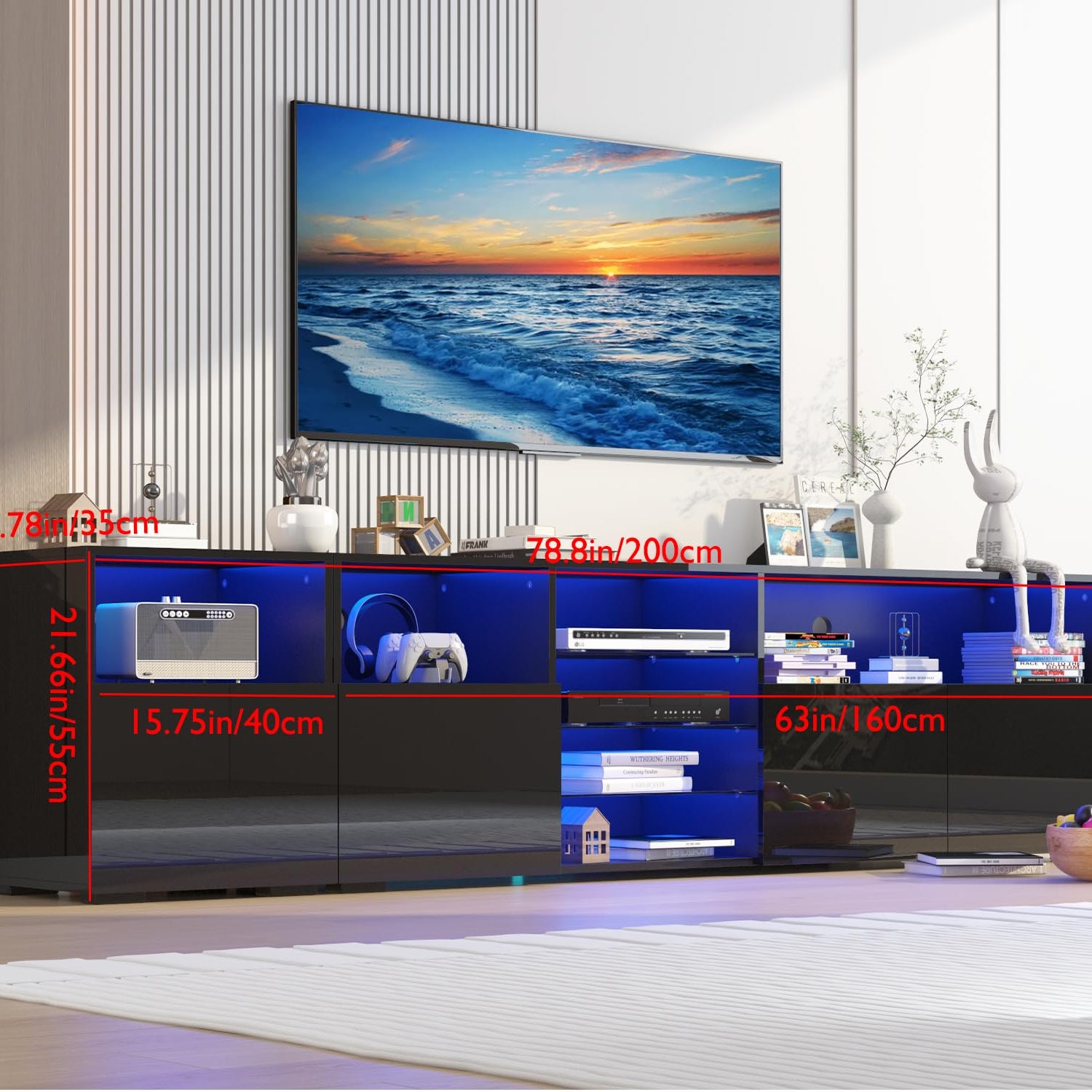 - Meaningful Family Christmas Gift:Christmas 2024 is coming, are you still worried about what gifts you should for your family this year? Modern LED TV stand,this 78.8in LED TV Stand by Mobile APP and remote control to control LED lights.The RGB lights can be changed at will, and the color of the lights can dance with the sound.