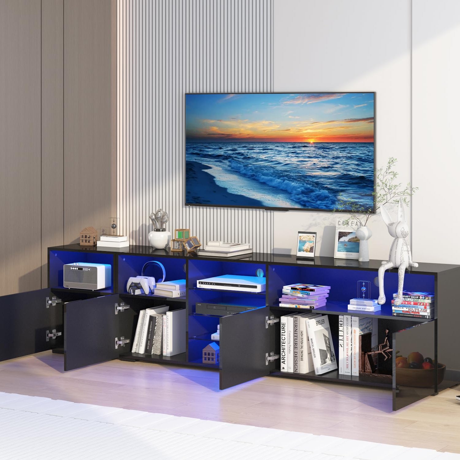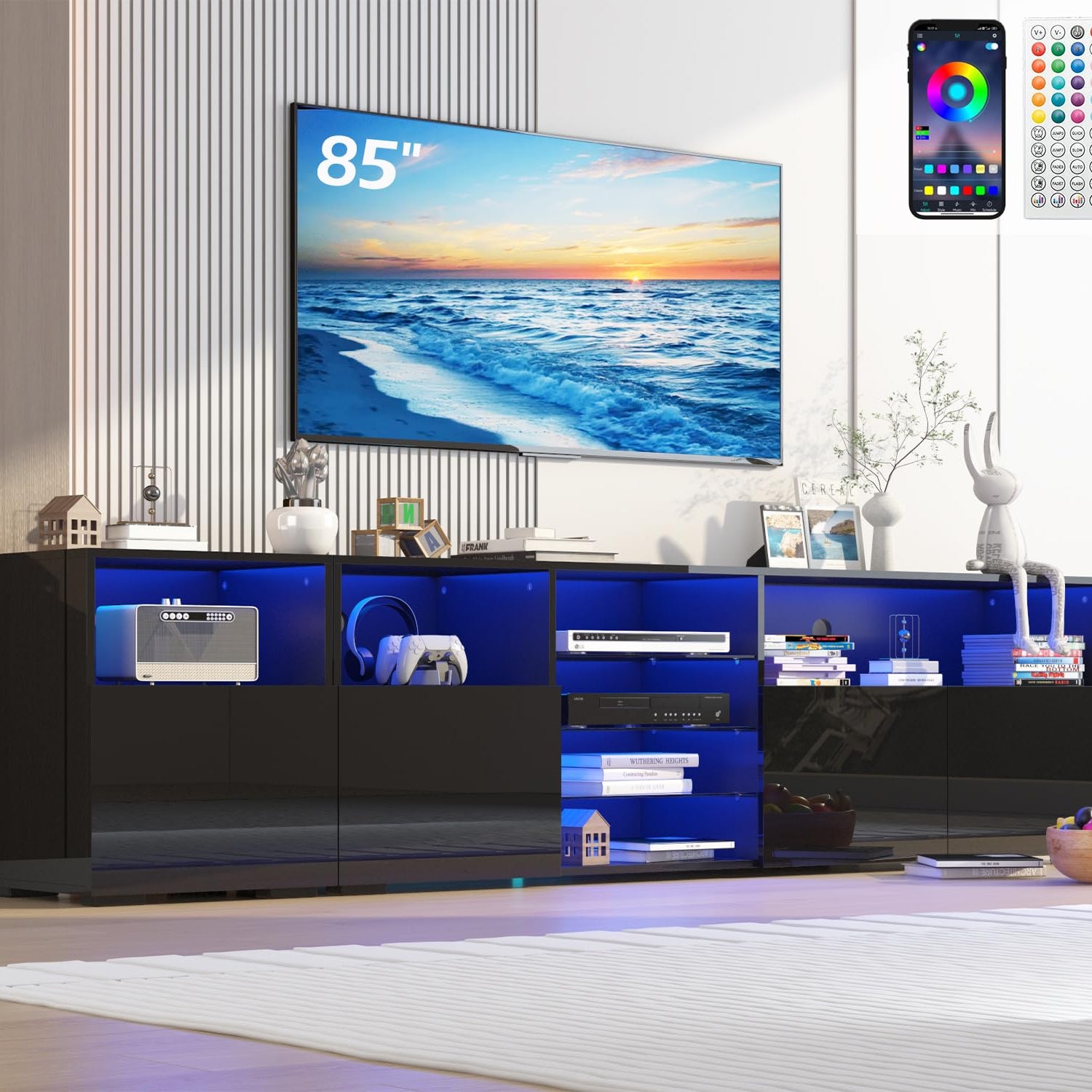 jiteentarou 79IN LED TV Stand for 75/80/85inch TV,High Glossy Modern TV Stand for Living Room,TV Entertainment Center with Adjustable Storage Shelf,RGB LED Lighting,TV Console(Black)