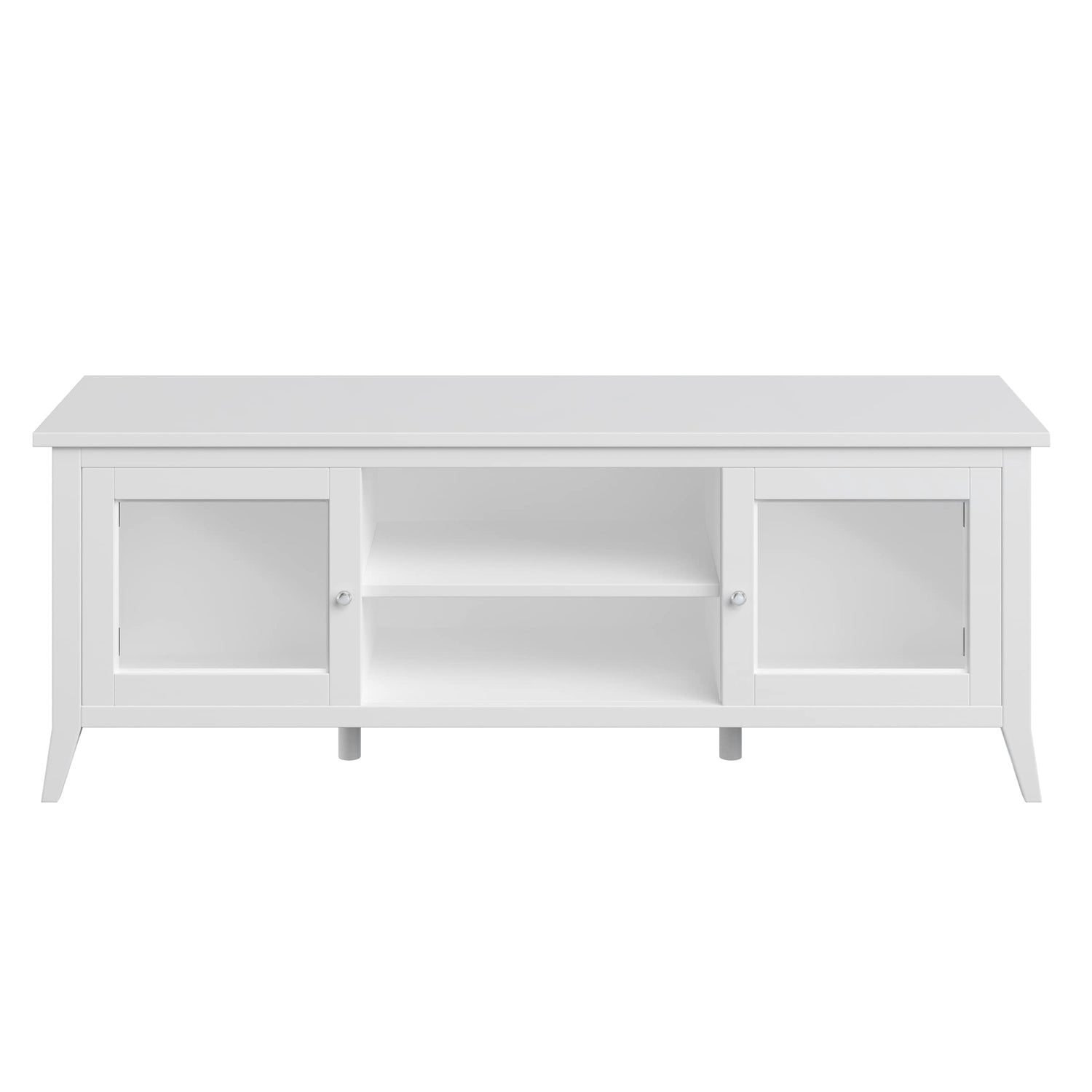 Details: Complement any home décor with the traditional design of the TV Stands by Lavish Home. This piece of living room furniture acts as a storage cabinet or TV stand and supports TVs up to 65-inches. Easily keep multiple gaming consoles together and keep your cords organized with the convenient cord management holes in the back panel of this TV cabinet. The white TV stand features 2 open shelves and 2 cubbies with tempered glass doors on either side, giving you plenty of room to display your personality with books, art, baskets, or decorative vases.