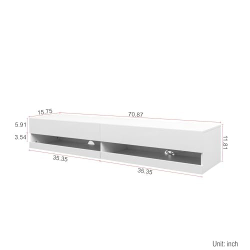 - 【Simple and Elegant Style】The LED Floating TV Stand adopts a minimalist design, with an elegant white overall and no unnecessary complex design. The versatile white color adapts to various spatial and color layouts, bringing you different experiences. This Wall Mounted TV Shelf is suitable for TV sizes of 55/65/75 inches.