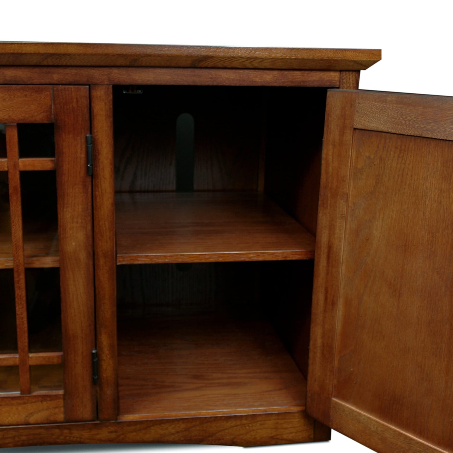 Leick Home 82360 Solid Wood Mission Oak Four Door TV Stand For 65" TVs Universal TV Console Living Room Storage Shelves Entertainment Center, Mission Oak
