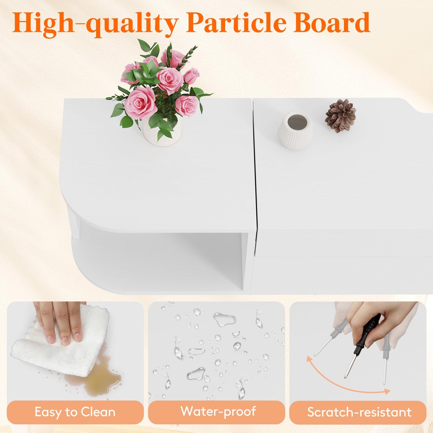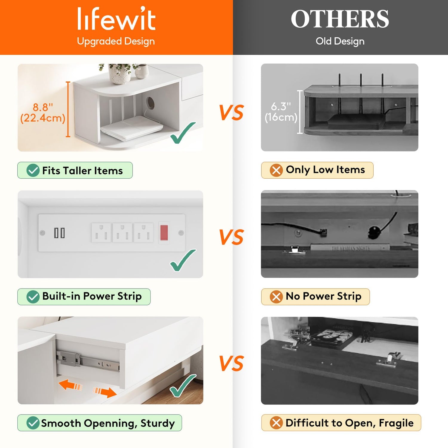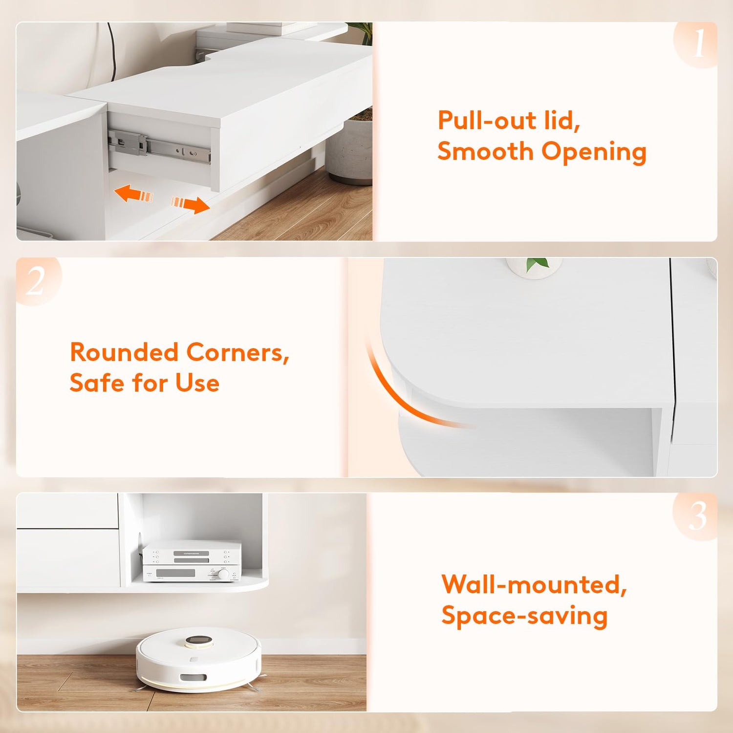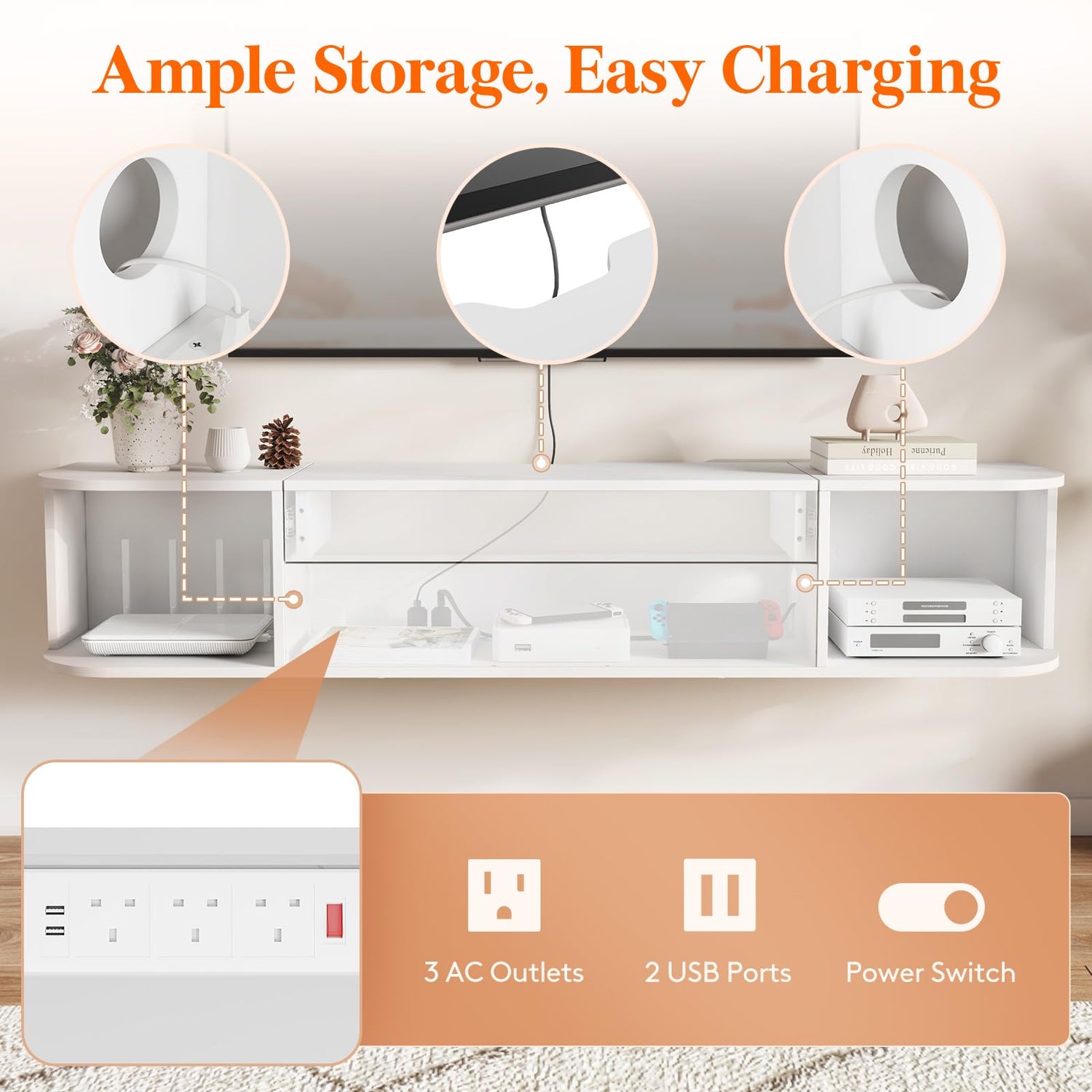 Lifewit Floating TV Stand for up to 50" TV, Wall Mounted Entertainment Center with Power Outlets and USB Ports, Large Storage Space with Sliding Tabletop, Open Shelves, White