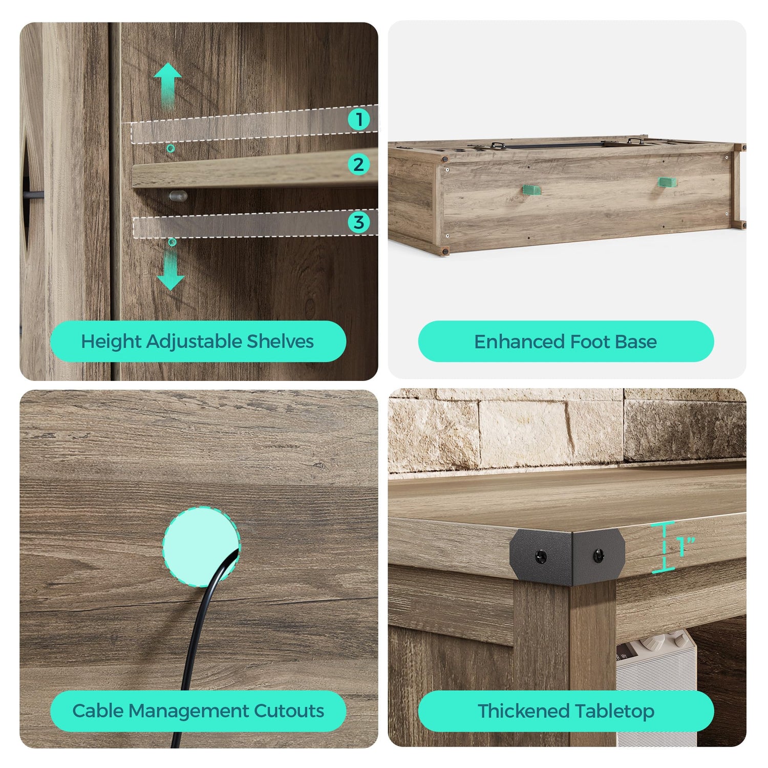 - Thoughtful Details - Sliding doors allow easy access to all necessities. Concealed circular cable holes for tidying up wires. Adjustable levelers on the legs minimize minor door misalignment caused by uneven floors