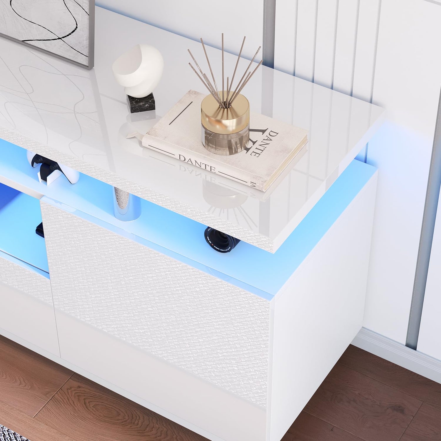 - 【High Gloss Finish】Modern entertainment center is designed with high gloss surfaces that are smooth and easy to clean. Perfectly complement various home decor styles and add a touch of luxury to your room.