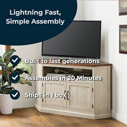 • QUICK & TOOL-FREE SETUP - Say goodbye to complex installations! Our farmhouse style entertainment center is a breeze to set up with no tools required. Transform your living room effortlessly and skip the multiple trips to the hardware store.